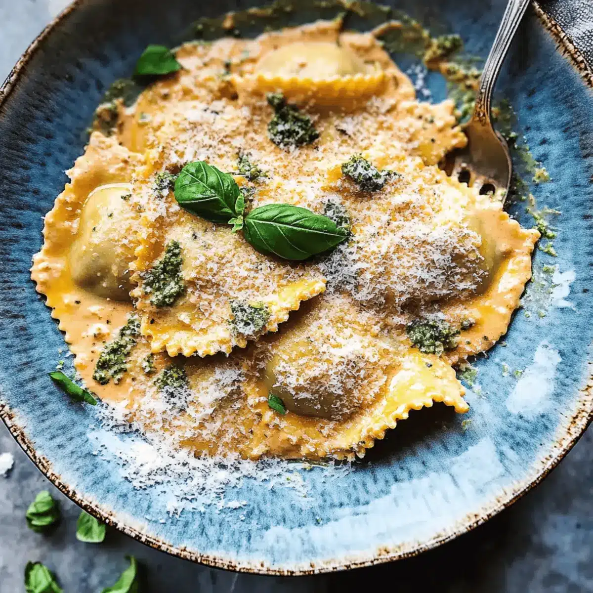 Finally, plate your ravioli and spoon the remaining sauce over the top. Finish with a generous sprinkling of freshly grated Parmesan cheese and a few extra basil leaves for garnish. The rich colors and textures will make this dish even more inviting, perfect for a delightful weeknight dinner!