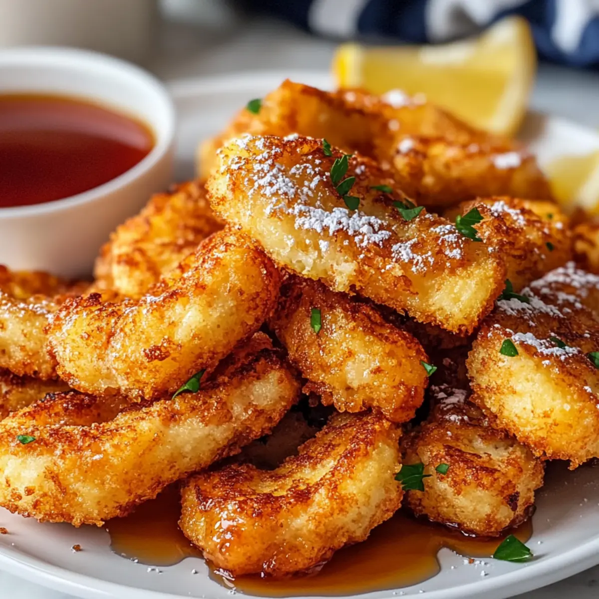 Cinnamon Sugar Sprinkle: A light coating of cinnamon sugar before serving adds a delightful sweetness that echoes the flavors within the sticks.