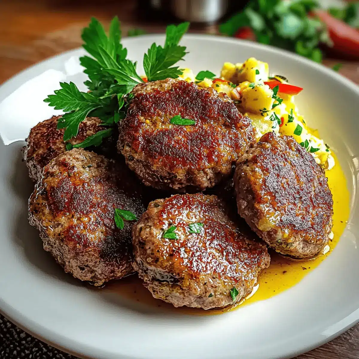 Enjoy the delightful essence of homemade cooking by pairing these juicy, comforting meat patties with delicious sides that enhance every bite.