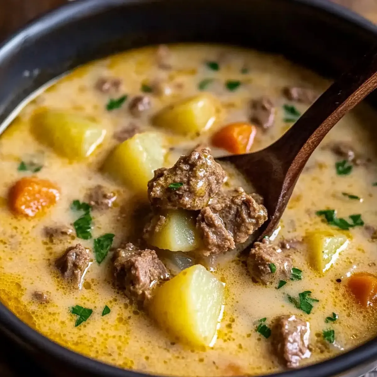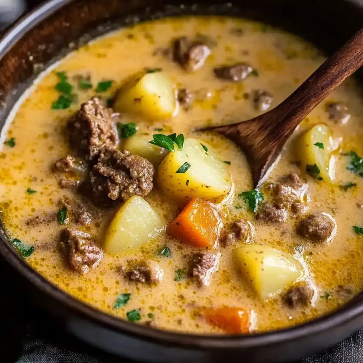 This Creamy Beef and Potato Soup is a heartwarming bowl of comfort featuring savory ground beef, tender potatoes, and rich broth, perfect for winter.