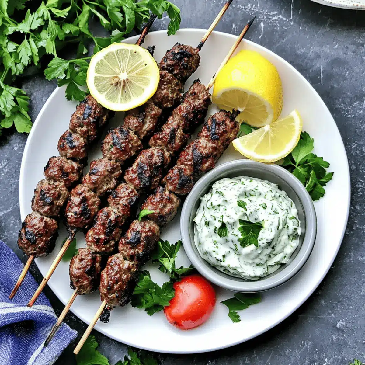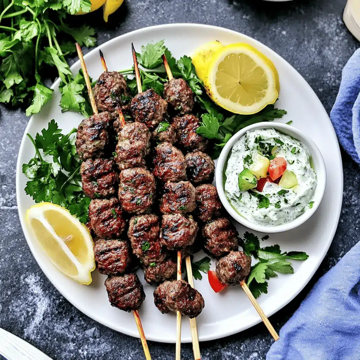 The aroma of grilled meat wafting through the air can instantly transport me to a sunny Mediterranean village, where vibrant markets buzz with life. Today, I’m thrilled to share my take on Beef Kofta Kebabs with Tzatziki Sauce—a dish that not only sizzles with flavor but also packs a protein punch, making it an ideal option for busy weeknight meals or laid-back summer gatherings. Picture juicy, tender kebabs grilled to perfection, served alongside a refreshing and creamy tzatziki that dances on your palate. With endless possibilities to mix up the protein or even bake these kebabs, you can tailor this delicious recipe to your cravings. Ready to tantalize your taste buds and simplify your dinner plans? Let’s dive into making these irresistible kofta kebabs!