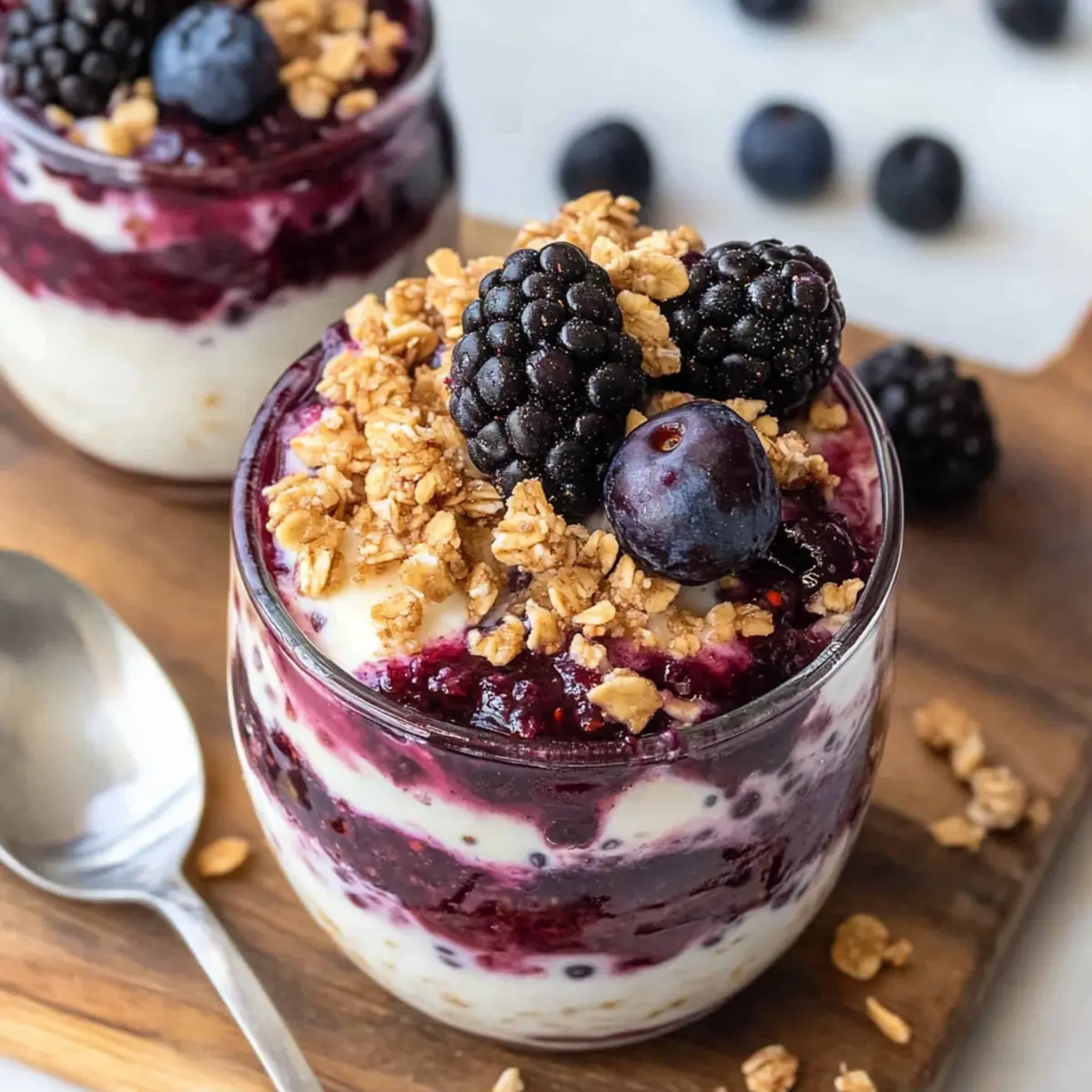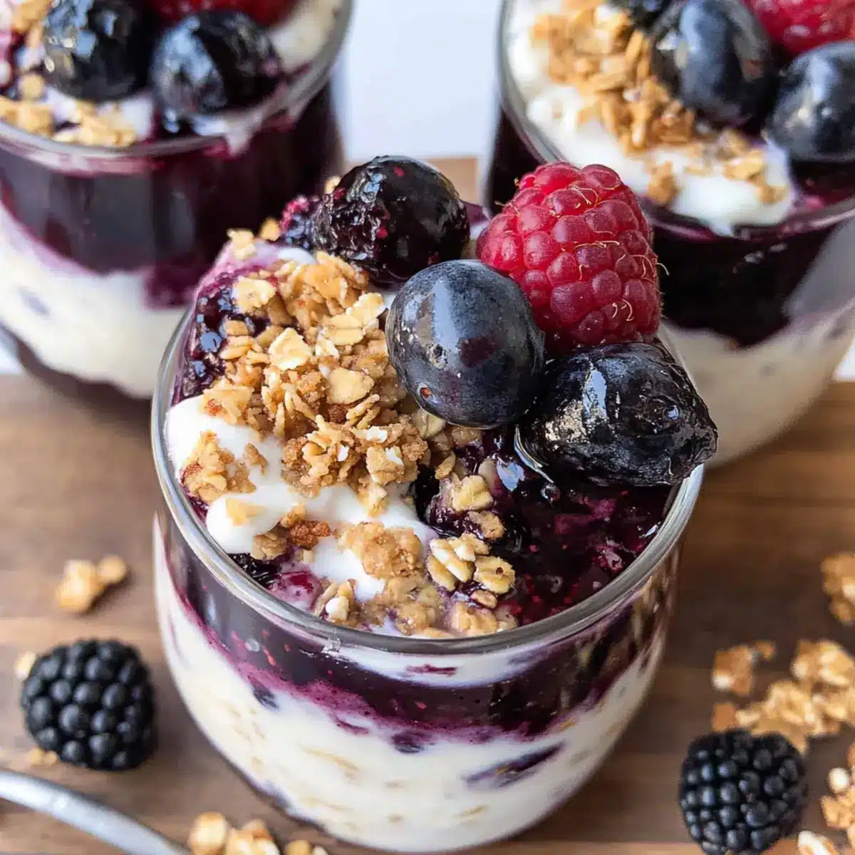 These Berry Cheesecake Overnight Oats are perfect for meal prep, allowing you to savor delicious mornings with ease! You can prepare the oat base and blueberry jam up to 24 hours in advance, storing them in separate airtight containers in the refrigerator to maintain freshness. For optimal flavor, let the mixtures chill overnight, though they can also be ready to enjoy after just 2-3 hours if needed. When you’re ready to serve, simply layer the oat mixture with the blueberry jam in a bowl or mason jar, and finish with your favorite toppings such as fresh berries or crushed graham crackers. Enjoy restaurant-quality flavors with minimal morning effort!