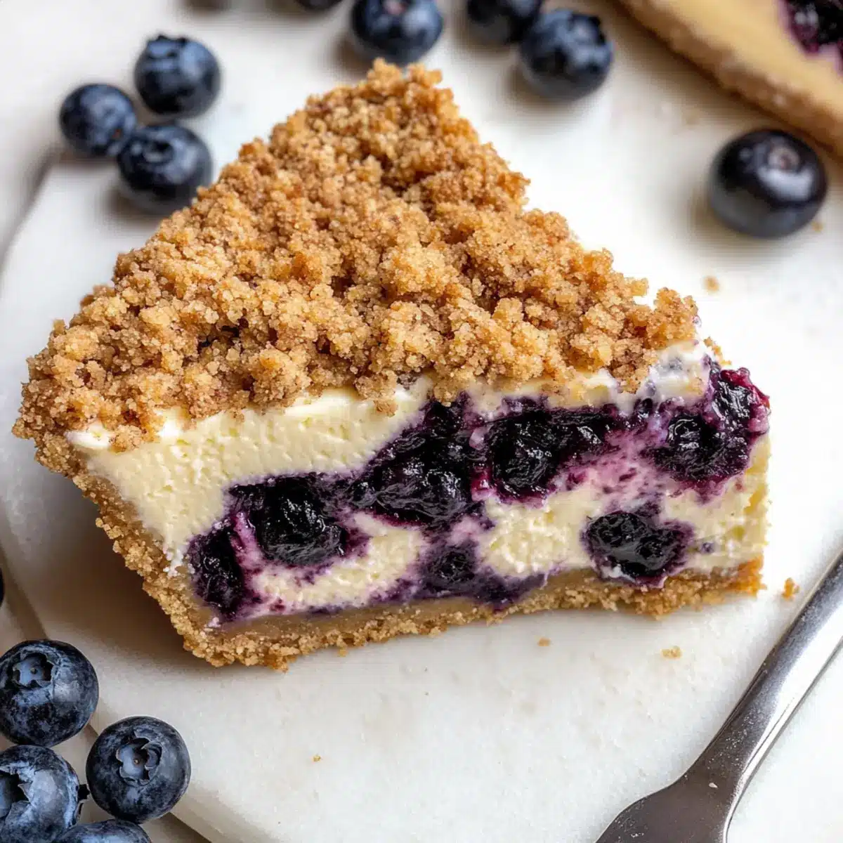 - Room Temperature Cream Cheese: Always let your cream cheese sit out for about an hour; it blends more smoothly, ensuring a perfect filling for your Blueberry Crumble Cheesecake.