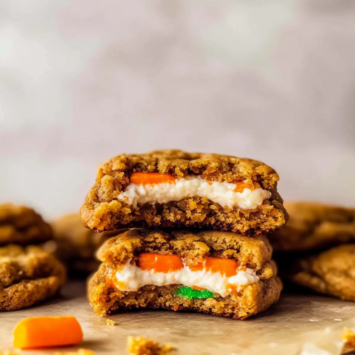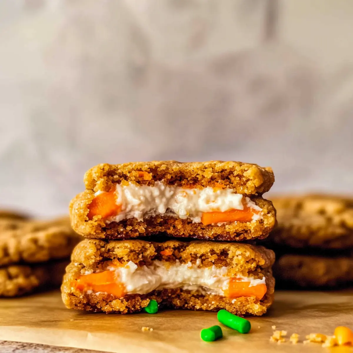 Delightful Flavor Fusion: These cookies are a scrumptious twist on a beloved classic, blending the rich flavors of carrot cake with a smooth cream cheese filling. Bursting with Spices: Warm spices like cinnamon and nutmeg give these cookies a comforting aroma, making your kitchen feel like spring.