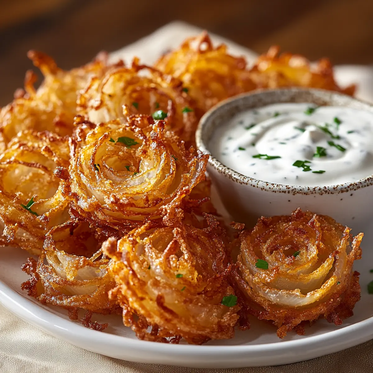 Crispy Onions with Creamy Buttermilk Ranch Dip Delight