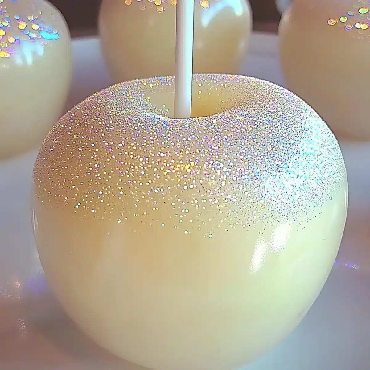 White Sparkle Candy Apples: Glam Up Your Next Celebration