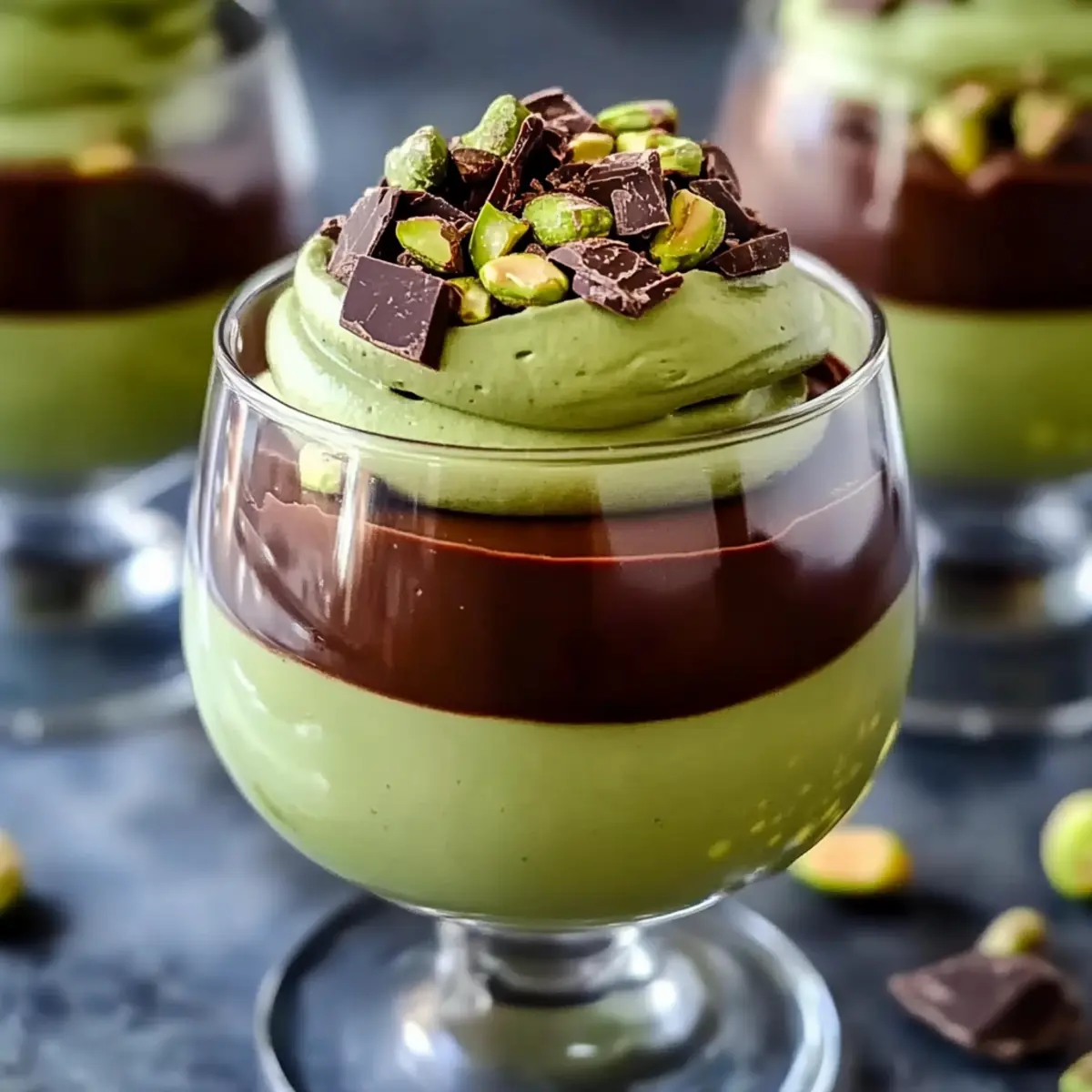 Indulge in Pistachio Mousse with Chocolate Ganache Delight