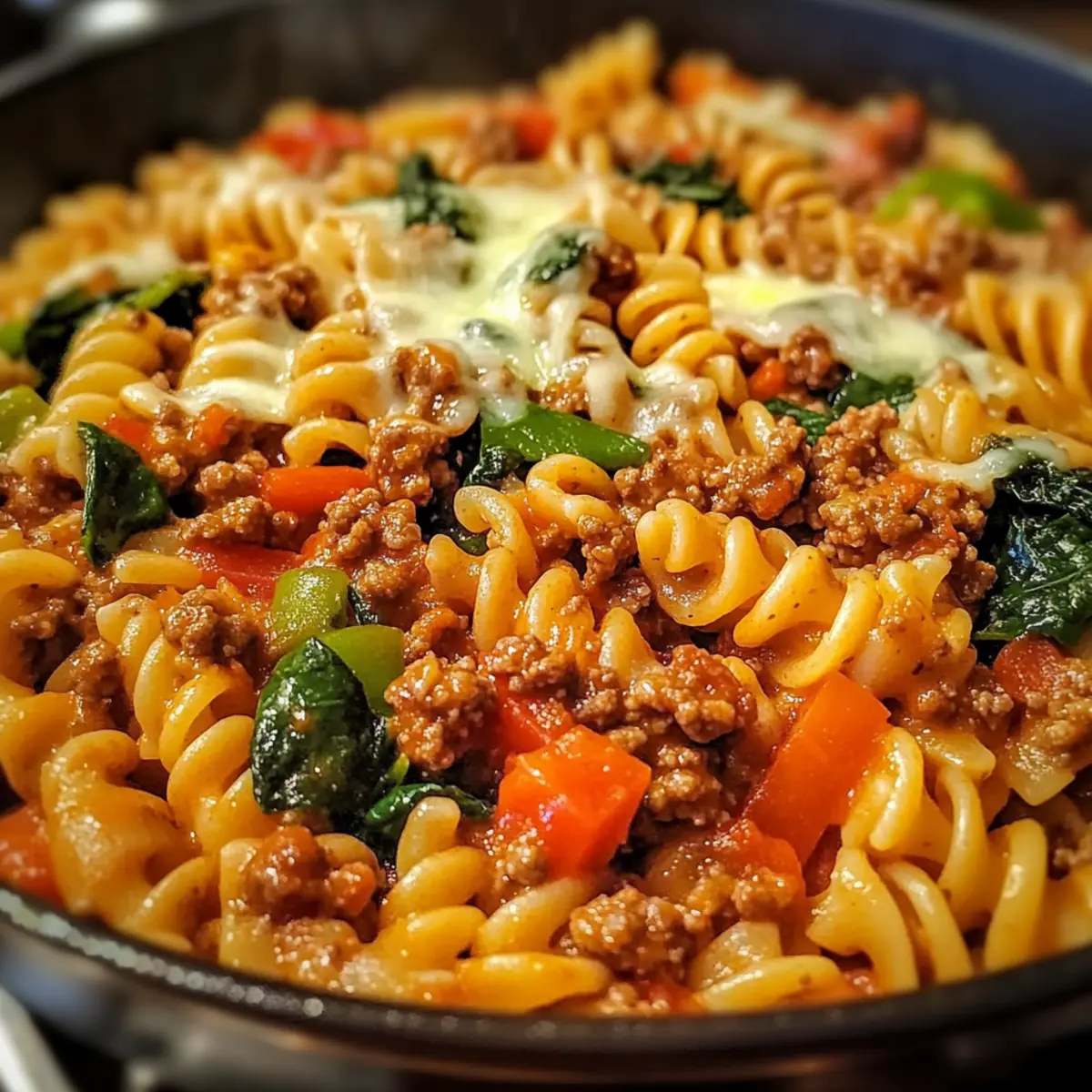 Creamy Mushroom Spinach Beef Pasta in One Pot Bliss