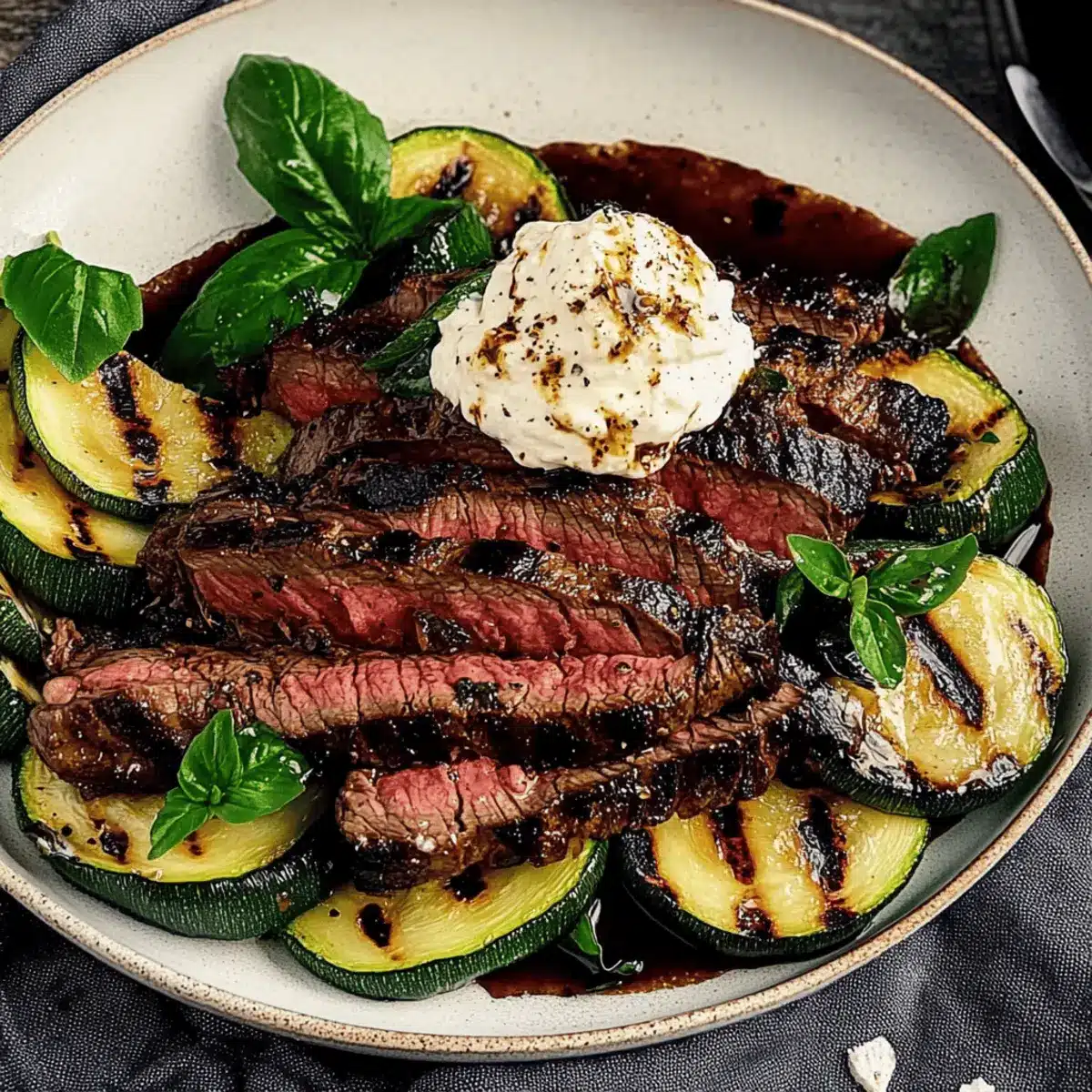 Balsamic Flank Steak with Zucchini and Whipped Feta Bliss