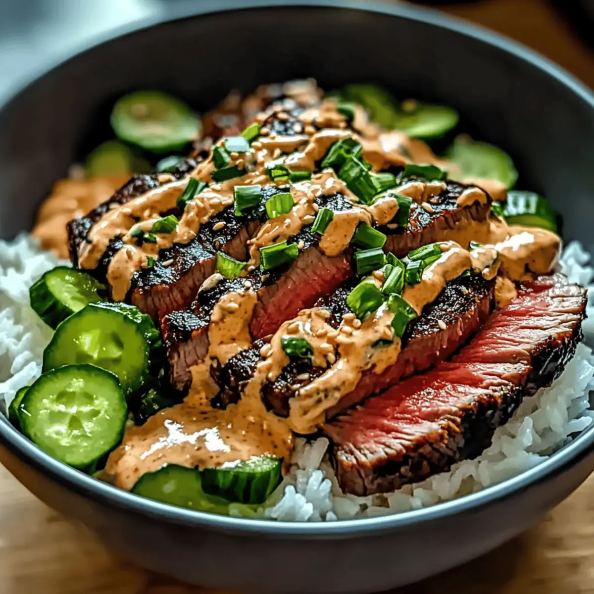 Savory Korean BBQ Steak Rice Bowls with Spicy Cream Sauce