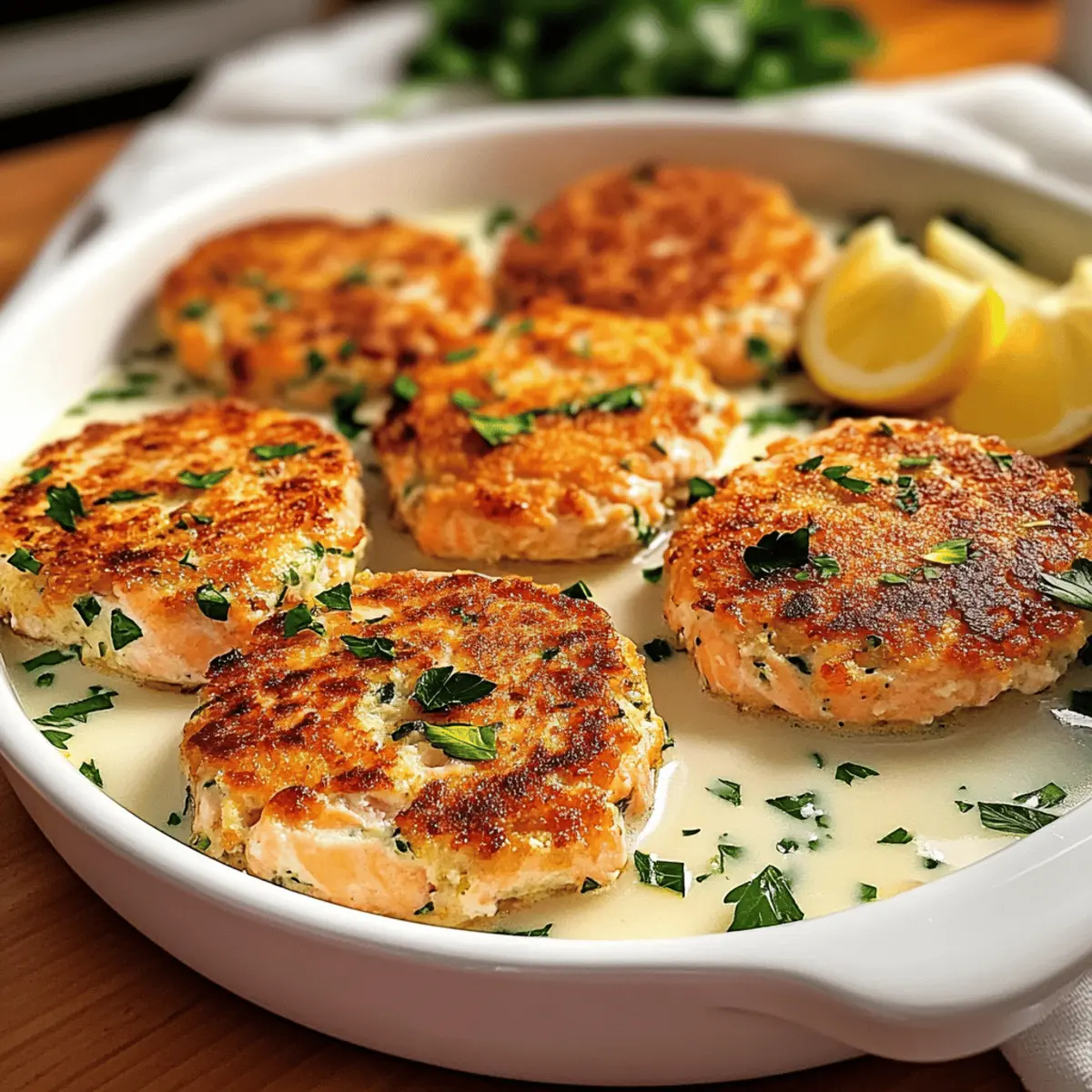 Crispy Salmon Patties with Creamy Lemon-Garlic Sauce Delight