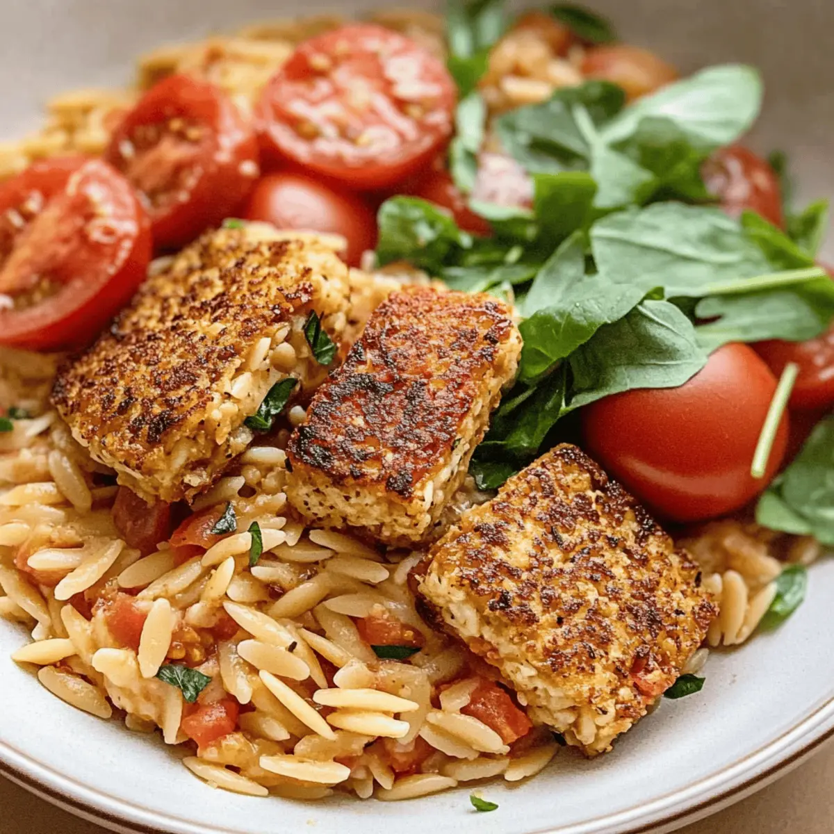 Creamy Tomato Orzo with Crispy Tofu Cutlets in 30 Minutes