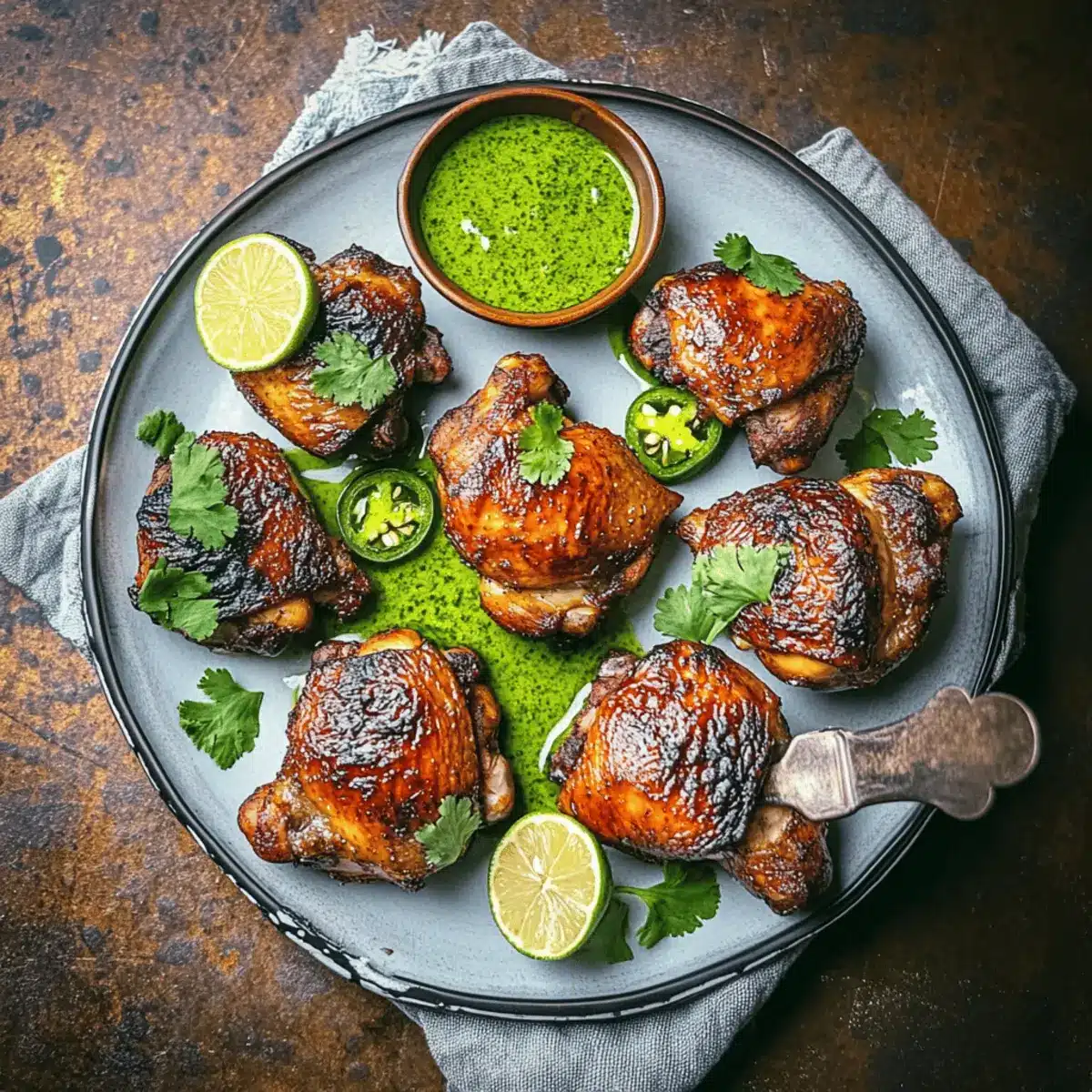 Savory Pollo a la Brasa with Zesty Green Sauce Delight