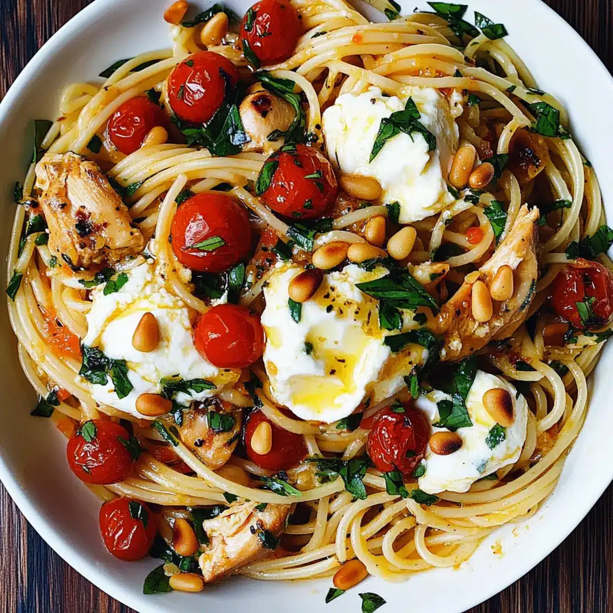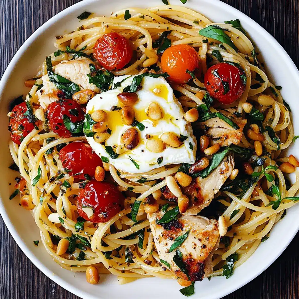 Comforting and familiar, this Chicken Spaghetti with Burrata and Lemon Butter Garlic Sauce combines beloved Mediterranean flavors that everyone will adore. Easily adaptable, you can swap ingredients to fit your pantry or dietary needs while keeping it delicious. Minimal prep time ensures that you can whip this up for weeknight meals without the fuss. Rich and creamy, the burrata elevates the dish, while the lemon garlic sauce gives it a refreshing zip. Serve it alongside a salad or some Grilled Chicken Pasta for that perfect touch of color and flavor. Everyone at your table is sure to ask for seconds!