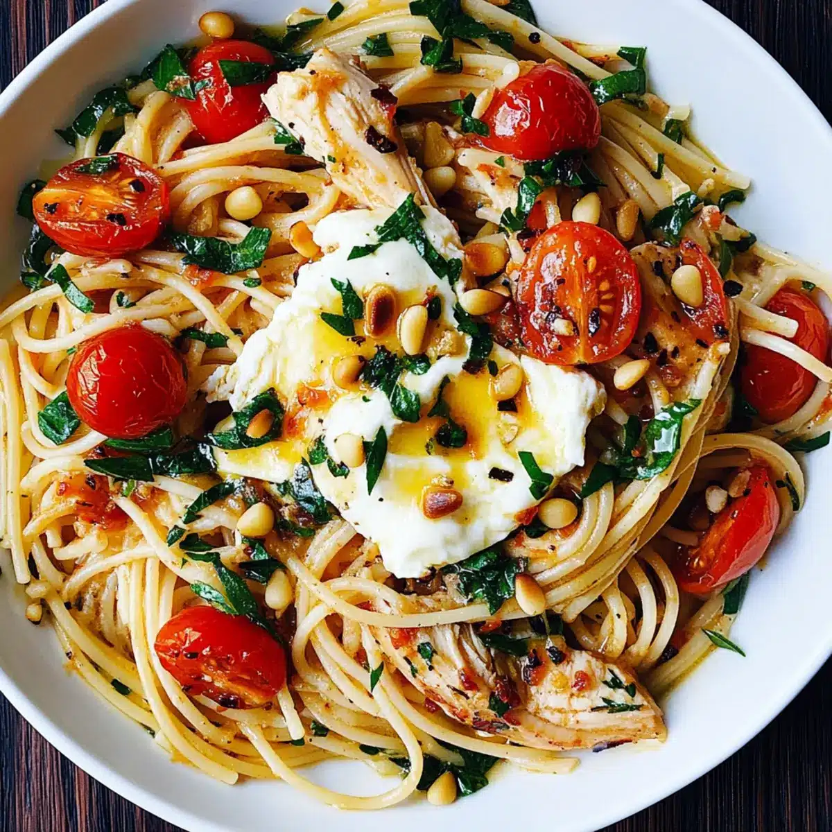 As I meticulously sliced the lemon, the zesty aroma instantly transported me to a sun-drenched Mediterranean market, ripe with fresh ingredients waiting to be transformed into something extraordinary. This Chicken Spaghetti with Burrata and Lemon Butter Garlic Sauce is my go-to dish whenever I crave comfort food that feels both sumptuous and family-friendly. The combination of tender chicken, juicy roasted cherry tomatoes, and the silky allure of burrata creates a meal that’s perfect for a cozy weeknight dinner or an impressive gathering. Plus, with its quick prep time, you’ll have more time to savor the moments with your loved ones. Are you ready to dive into a bowl of flavor that feels like a warm hug?