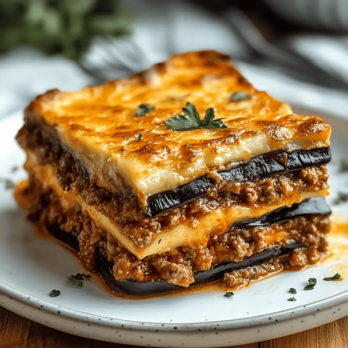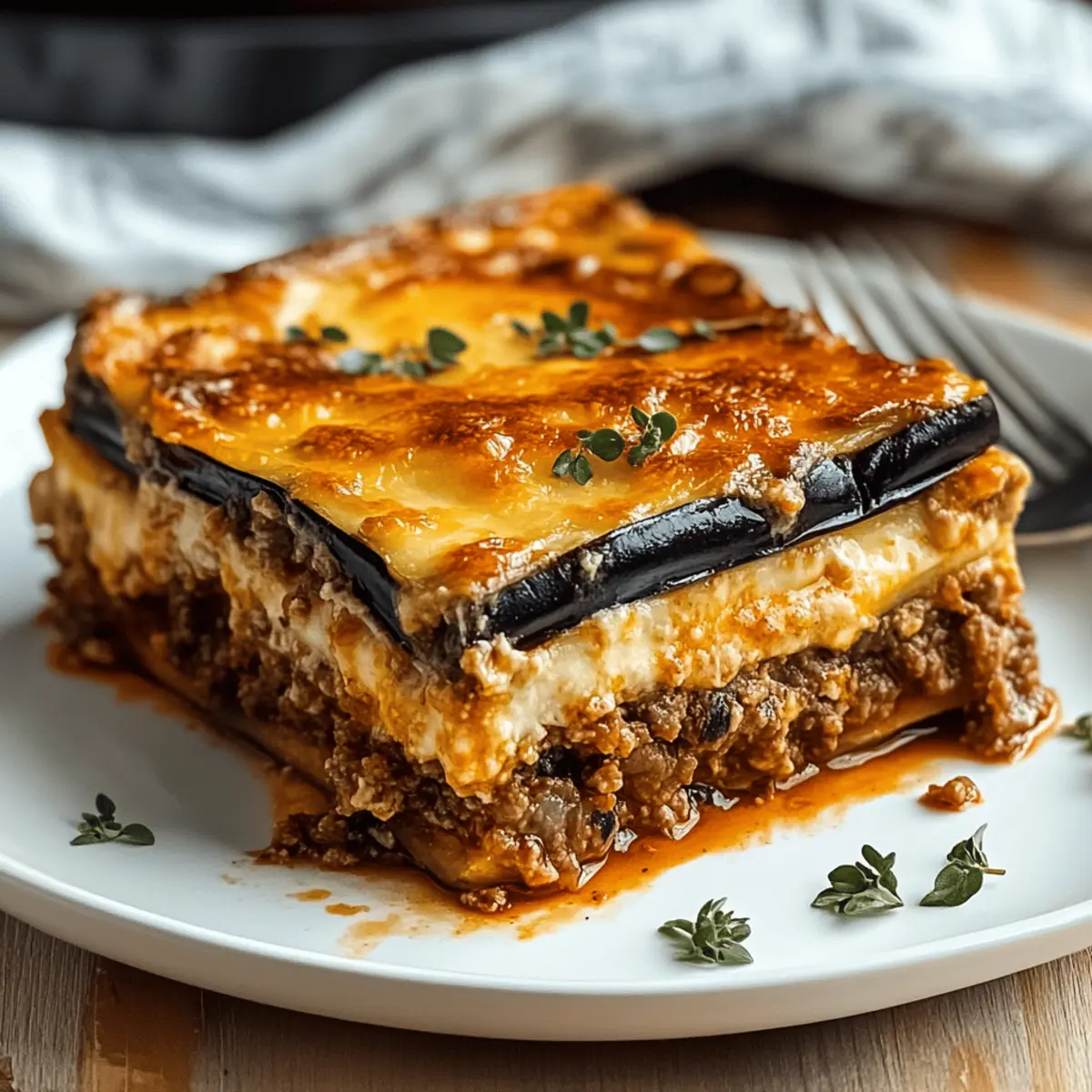 Let It Rest: Allow the baked moussaka to cool for at least 15 minutes before serving; this helps the layers set, making it easier to slice.