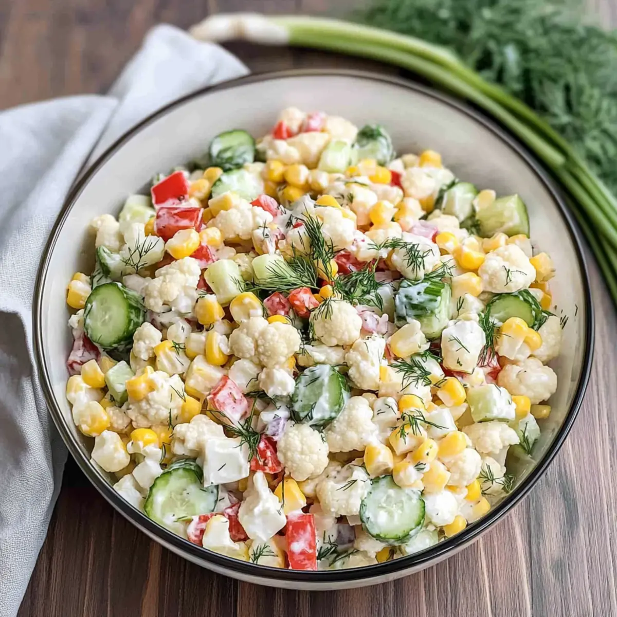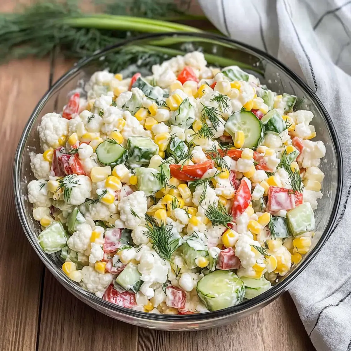 As I gathered my fresh summer vegetables, the vibrant colors of the garden sparked a sense of excitement. What better way to celebrate the season than with a delightful Corn Salad Recipe? Enter my Creamy Cauliflower Corn Salad, a lively mix of tender cauliflower florets, crisp cucumbers, and the sweet crunch of corn—all bathed in a rich, homemade dressing that oozes goodness. This salad not only comes together in a snap, making it perfect for those busy summer days, but it also shines at potlucks and BBQs, bringing everyone together with its wholesome charm. You’ll love how easy it is to whip up and how it transforms everyday meals into something special. Are you ready to refresh your summer side dish lineup? Let’s dive into the recipe!