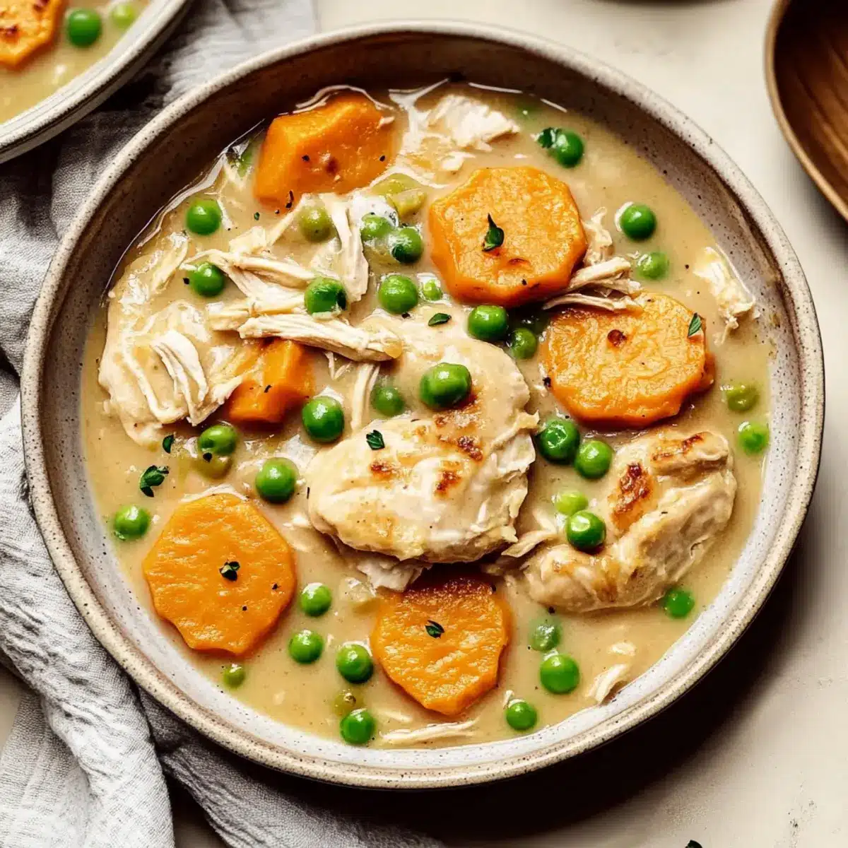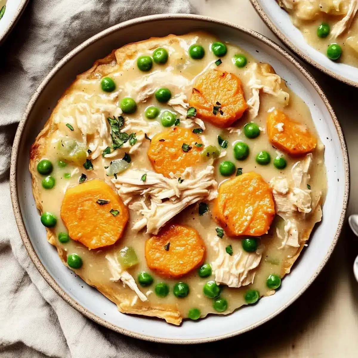 Perfect Texture: For a creamier soup, consider blending a portion of the soup before adding the chicken and peas. This enhances the cozy crustless chicken pot pie experience.