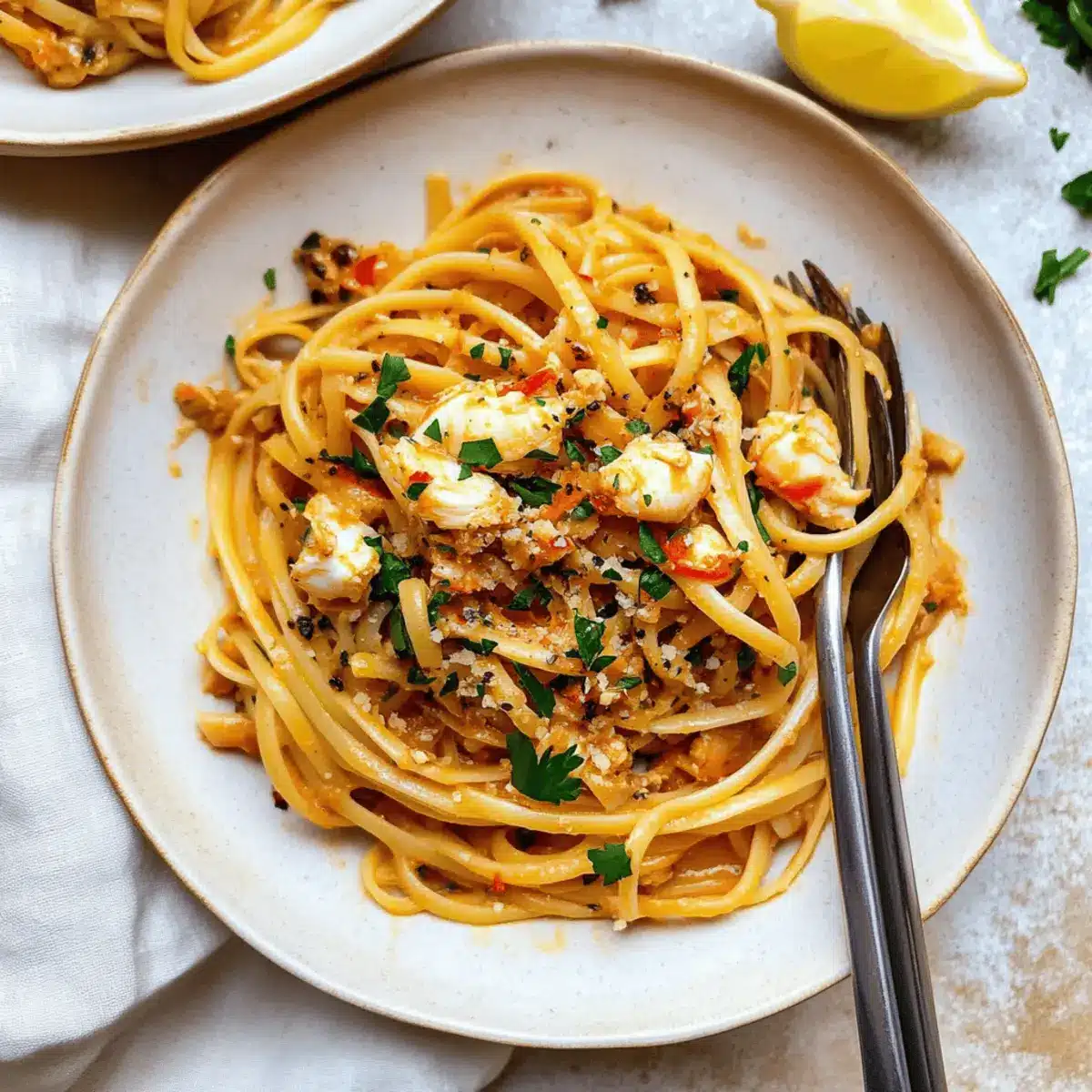 As I tossed the linguine into the bubbling water, the fragrance of fresh garlic and shallots began to weave their magic in my kitchen. It’s moments like these that I treasure—simple yet divine, especially when crafting my Quick & Delicious Crab Linguine. In just 15 minutes, this dish transforms into a flavorful escape, combining tender crab meat in a rich, aromatic sauce that will make even a busy weeknight feel special. Not only is it a fast dinner option, but it’s also versatile enough to suit both fresh and canned crab. Plus, if you’re keeping an eye on dietary needs, a gluten-free pasta substitute makes this dish accessible for all. So, are you ready to dive into a bowl of irresistible seafood bliss? Let’s get cooking!