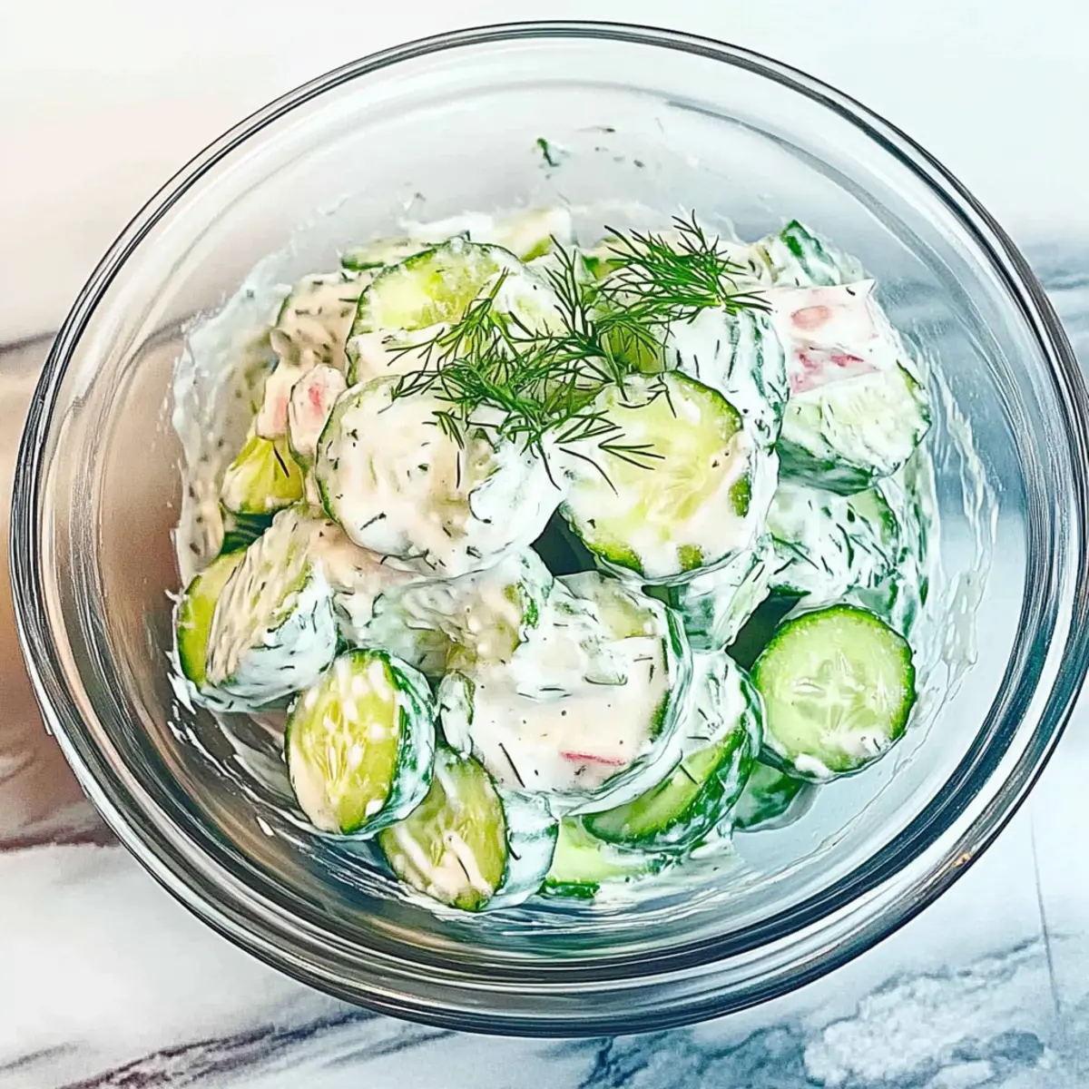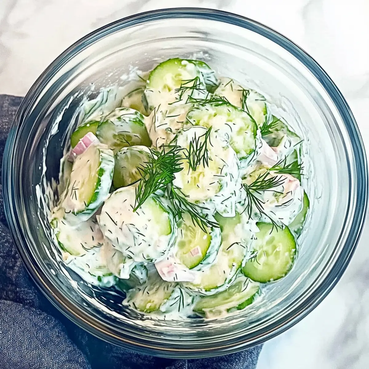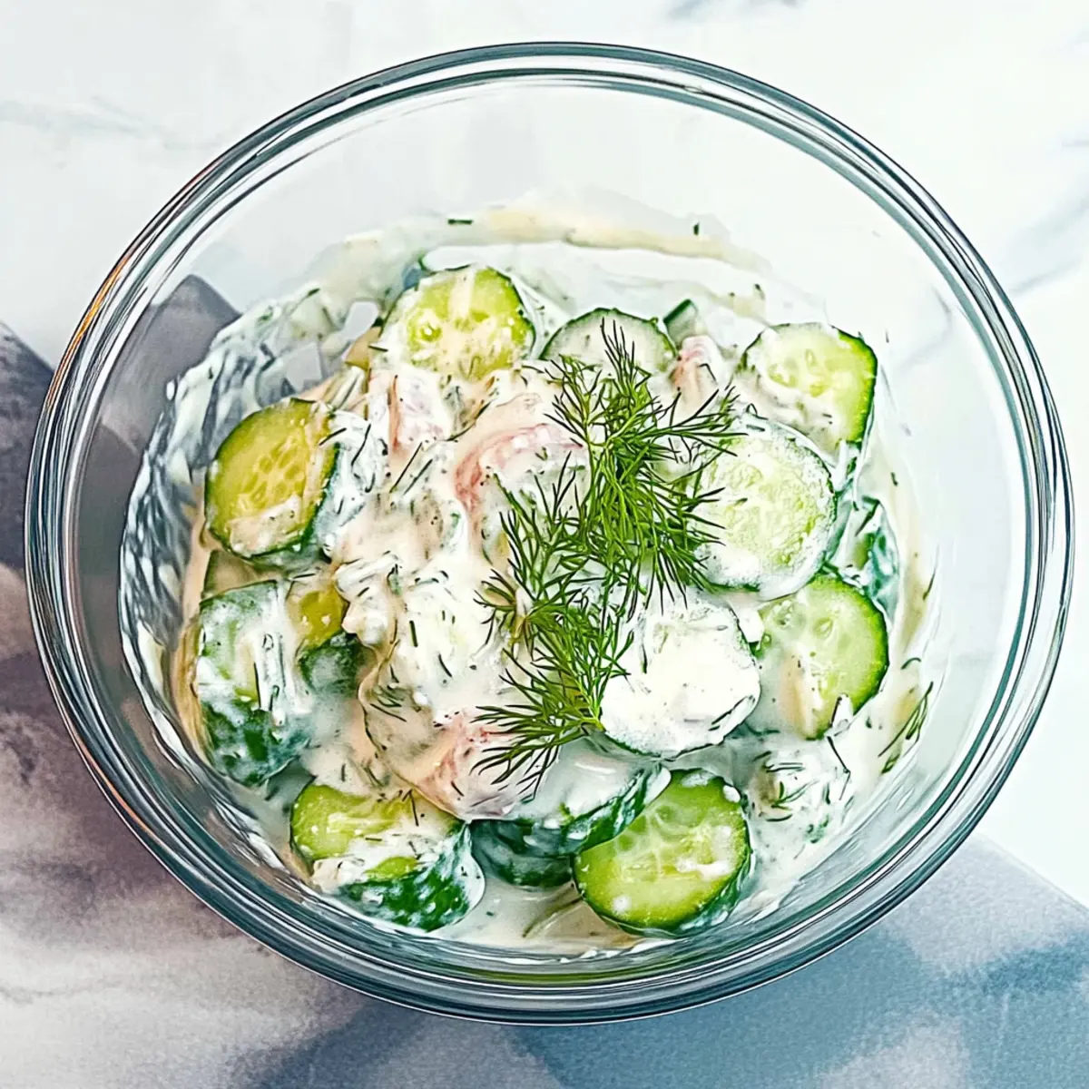 If you’re looking to switch things up, you can totally experiment with different herbs! Fresh parsley or mint can infuse a refreshing twist into your creamy cucumber salad. I often alternate between these to mix flavors. Just remember to adjust the amounts since fresh herbs can differ in strength!