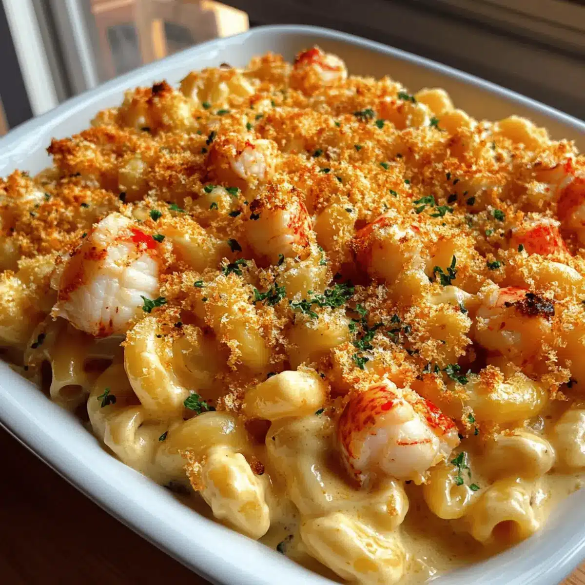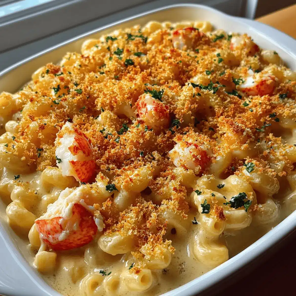 These Creamy Lobster Mac and Cheese are perfect for busy weeknights that need a little extra luxury! You can prepare the entire dish and store it in the refrigerator for up to 24 hours before baking. To do this, simply follow the recipe instructions up to the assembly point and then cover your baking dish tightly with foil or plastic wrap. When it’s time to enjoy, preheat your oven to 350°F (175°C), remove the cover, and bake for 25-30 minutes instead of the usual time, checking for that golden breadcrumb topping. This way, you’ll have a restaurant-quality dinner ready with minimal effort, just as delicious as if you made it fresh!