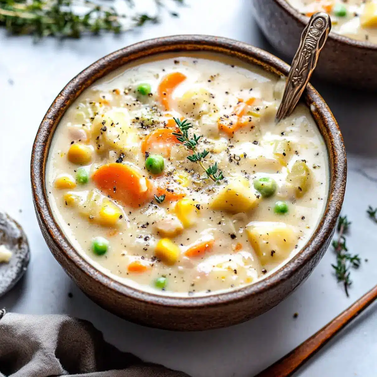 Comforting Warmth: This creamy vegetable soup is like a hug in a bowl, perfect for chilly evenings.