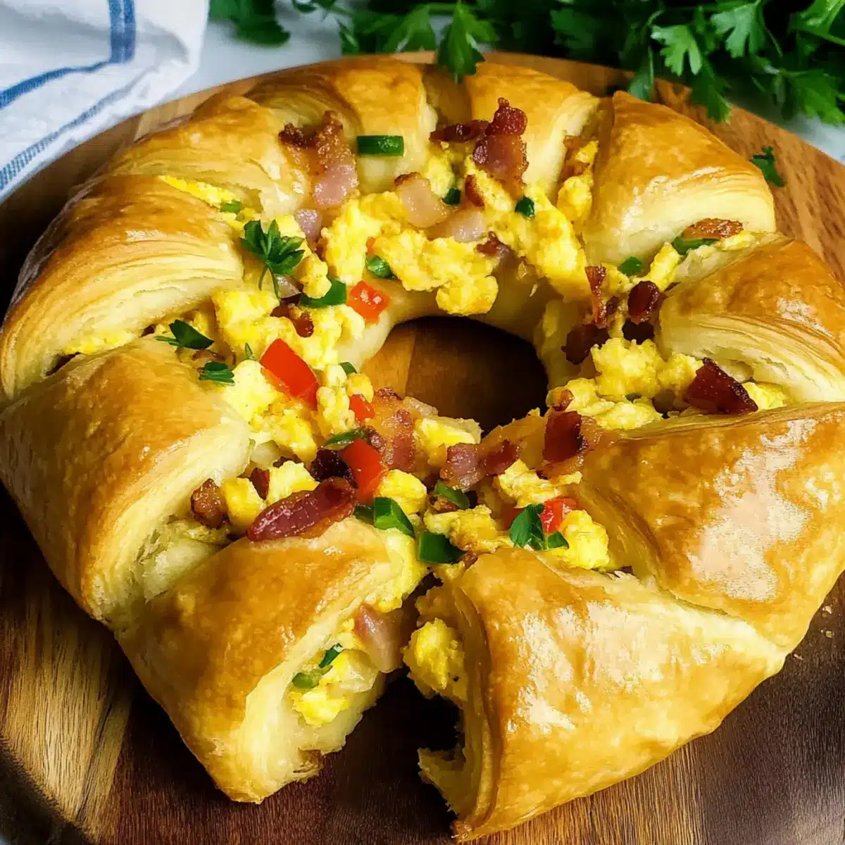 As the sun rises and the kitchen fills with the mouthwatering aroma of sizzling bacon, I can’t help but feel a rush of excitement for breakfast. Today, I’m thrilled to share my favorite recipe for a Crescent Breakfast Ring that’s not only family-friendly but also incredibly adaptable to suit your taste buds. This delightful dish is perfect for brunch gatherings or a cozy morning at home, requiring minimal prep time while still impressing everyone at the table. Imagine layers of crispy bacon, fluffy scrambled eggs, and vibrant peppers, all beautifully wrapped in flaky crescent roll dough. What could be better? Whether you’re cooking for a crowd or just for yourself, this comforting meal invites creativity and customization. So, are you ready to join me in crafting this delicious breakfast masterpiece?
