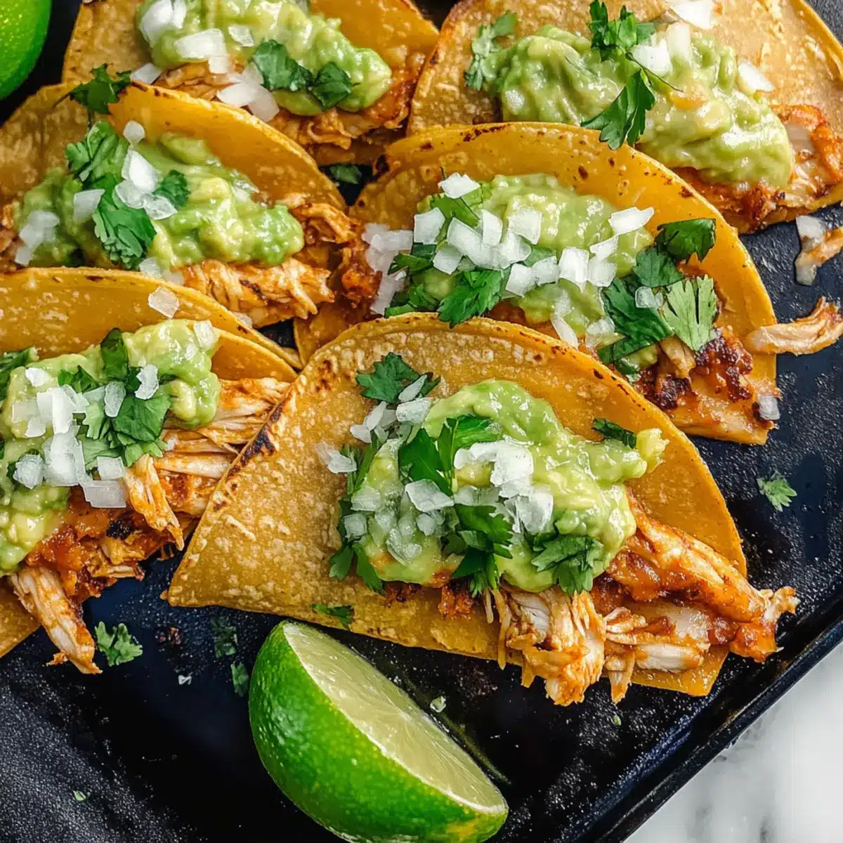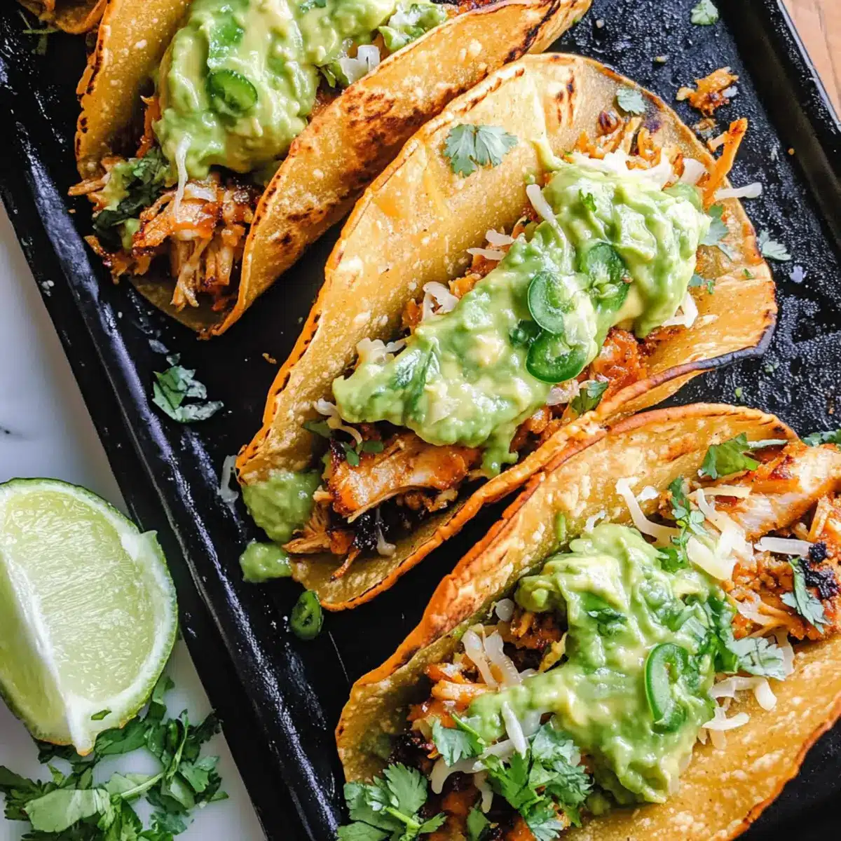 Crispy, flavorful goodness: The crunchy corn tortillas contrast perfectly with the smoky chicken and creamy avocado-jalapeño salsa, creating a symphony of textures and flavors.