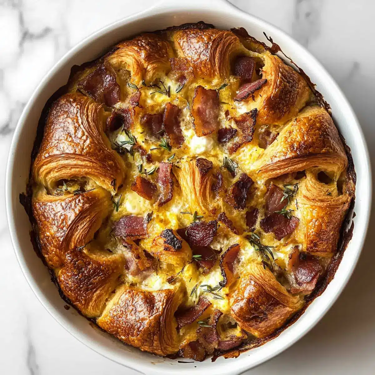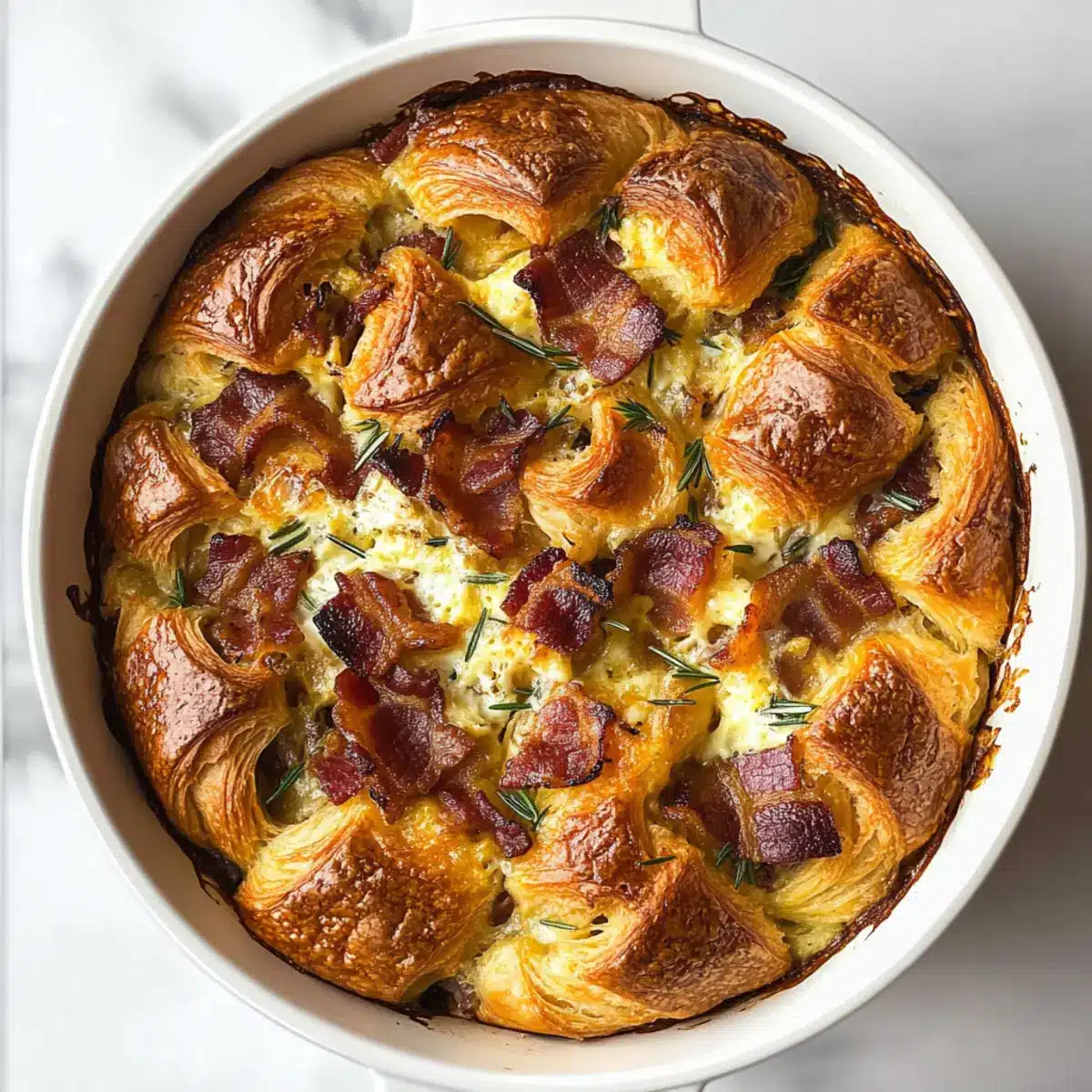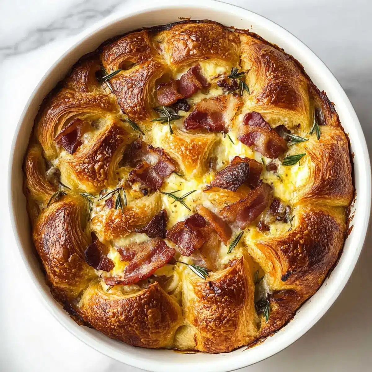 This Croissant Breakfast Casserole combines flaky croissants, smoky Gouda, and crispy bacon for an easy, crowd-pleasing dish perfect for brunch.