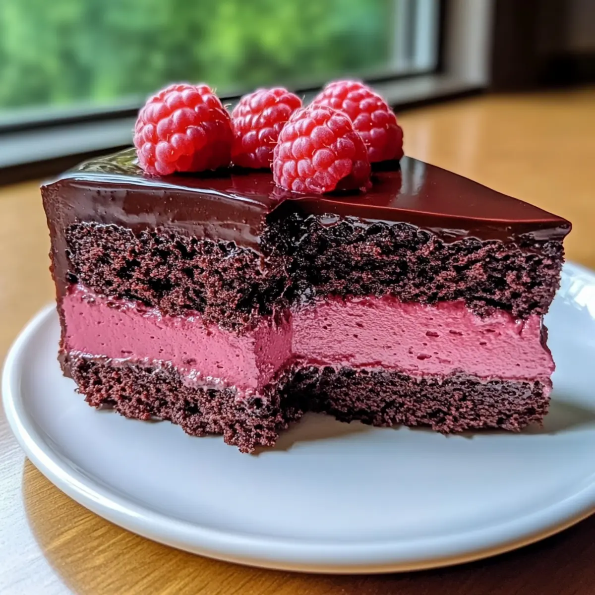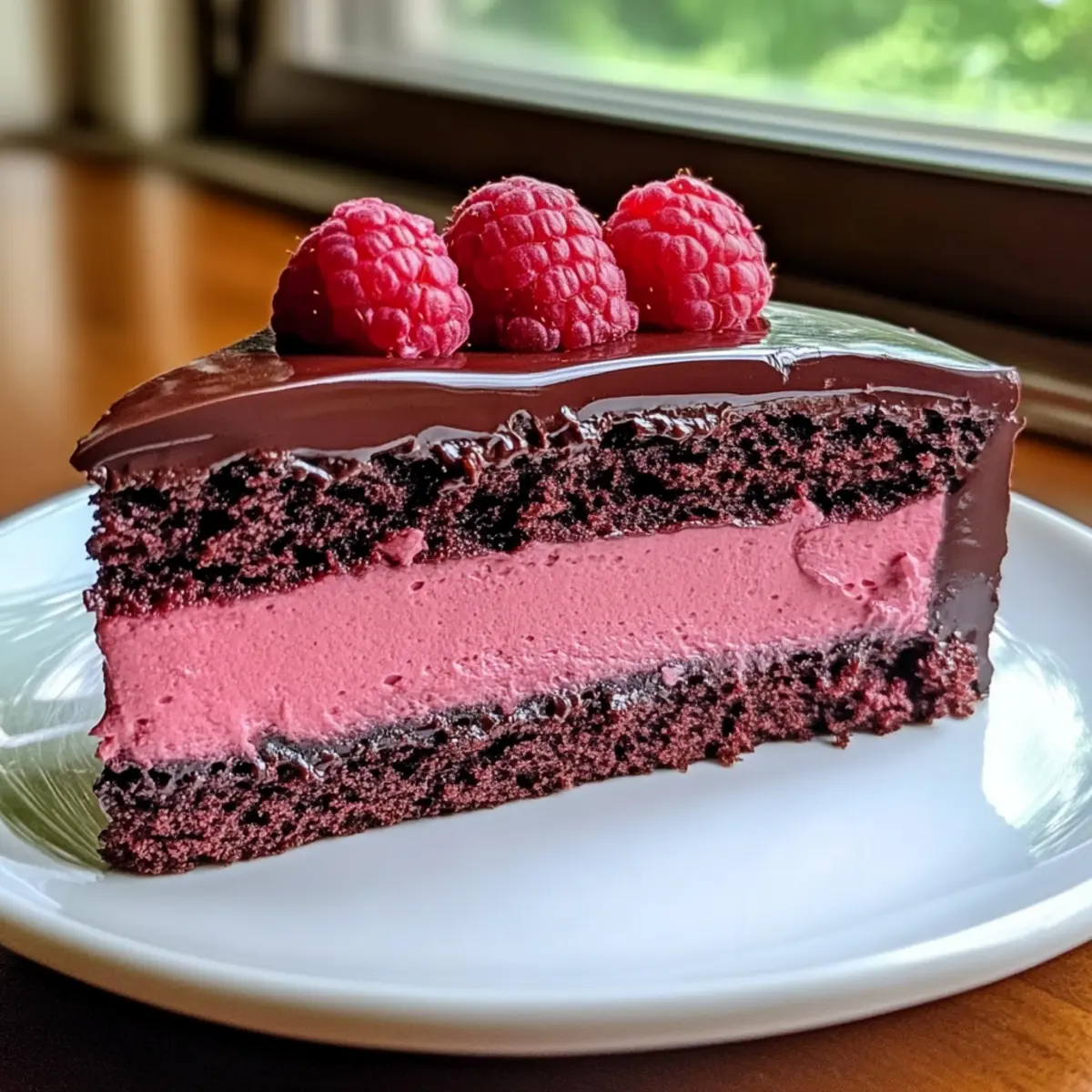 Luxurious Layers: This Dark Chocolate Raspberry Mousse Cake combines rich, moist chocolate cake with a light and airy raspberry mousse, ensuring every bite is a delightful experience.
