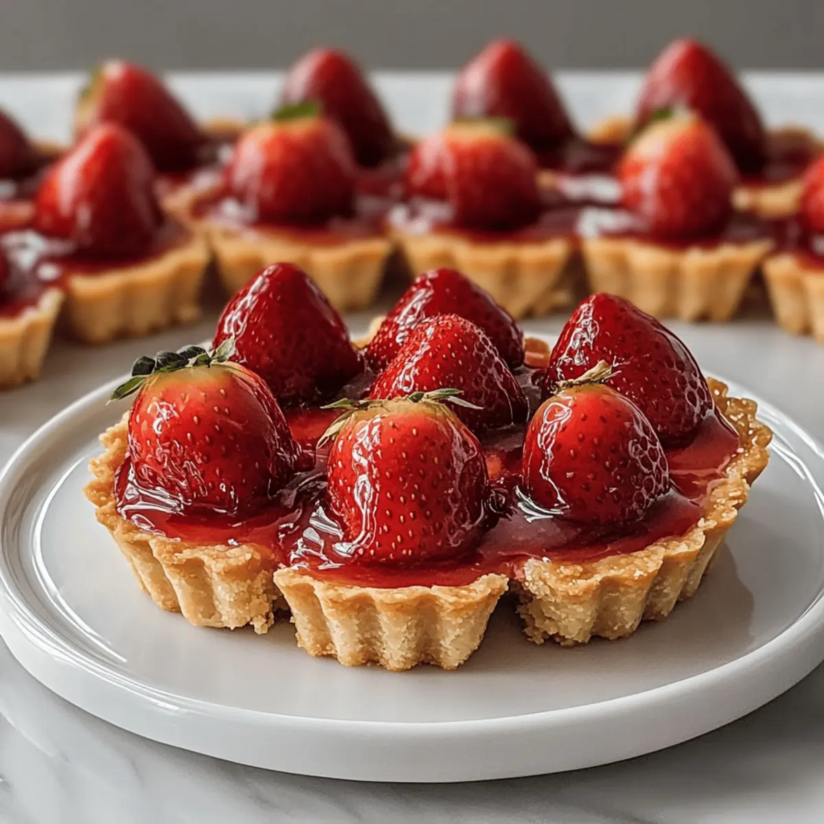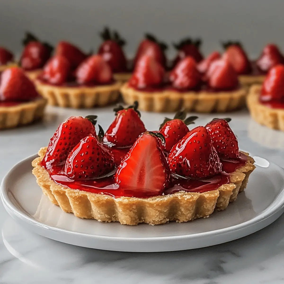 4. Take your prepared tart shells and arrange the sliced fresh strawberries evenly in each shell. Spoon the cooled glaze over the strawberries.