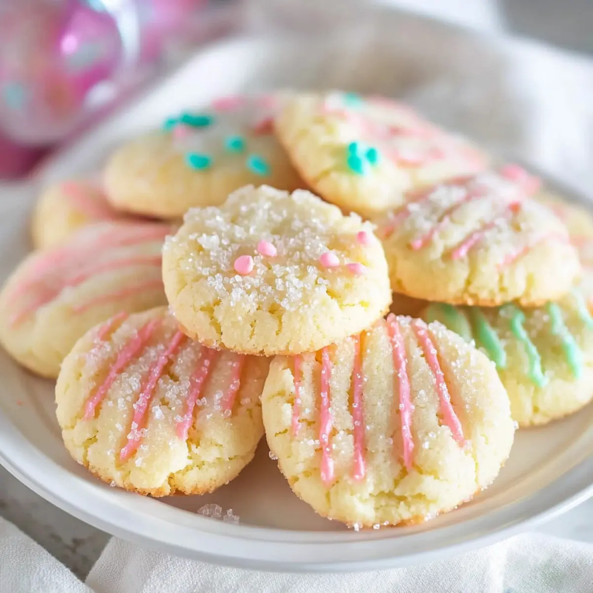 • No Sugar Top: If you’re looking for a less sweet option, skip the sanding sugar entirely. These cookies are still flavorful on their own and perfect for pairing with coffee or tea!