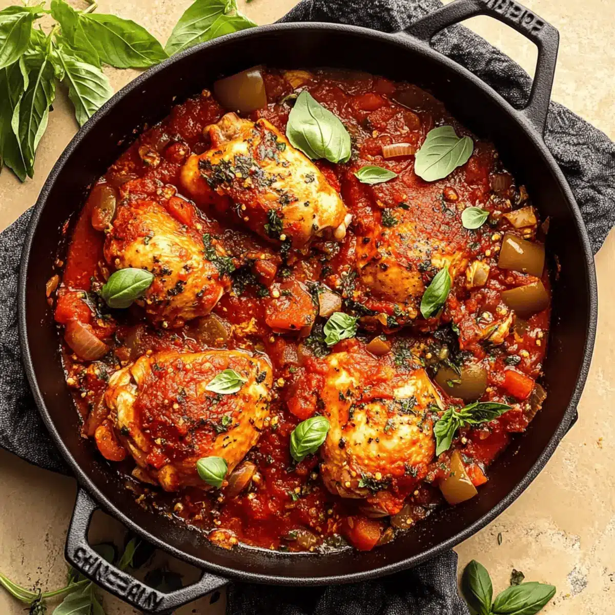 These Easy Chicken Cacciatore (Hunters Style) are ideal for meal prep, allowing you to enjoy the comforting flavors without the last-minute rush. You can brown the chicken and sauté the vegetables up to 24 hours in advance; simply refrigerate the components separately until it’s time to cook. For the best results, store the tomato sauce base in an airtight container to prevent it from thickening too much overnight. When you’re ready to serve, nestle the browned chicken into the sauce, cover, and bake as directed. This approach will ensure that your dish is just as delicious and full of flavor, without sacrificing quality on busy weeknights.