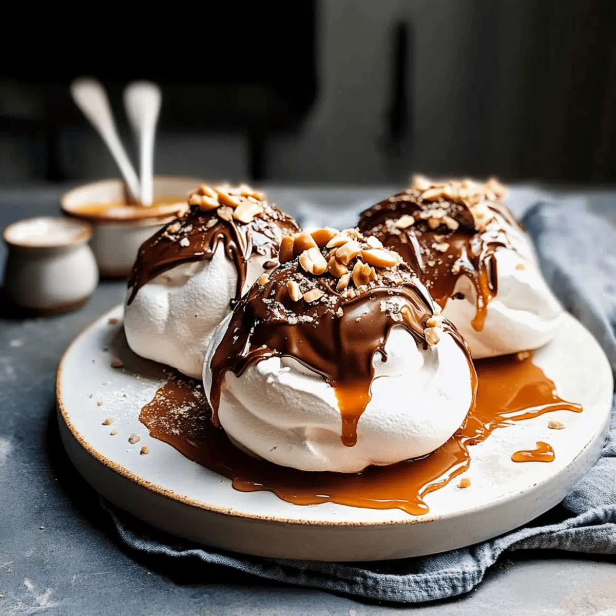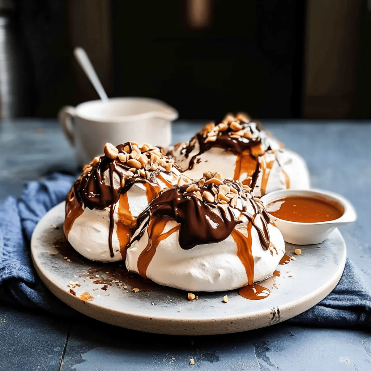 These Easy Chocolate Pavlova with Salted Caramel Sauce are a fantastic choice for meal prep enthusiasts! You can whip up the meringue up to 24 hours ahead of time, allowing it to cool completely and then store it in an airtight container at room temperature. The salted caramel sauce can also be made in advance and kept in the refrigerator for up to 3 days; just reheat gently before serving to restore its smooth texture. When you’re ready to impress your guests, simply dollop whipped cream onto the cooled pavlovas, drizzle with the caramel, and sprinkle with peanuts for a stunning finish. With these make-ahead tips, you’ll have a stress-free dessert ready to dazzle!