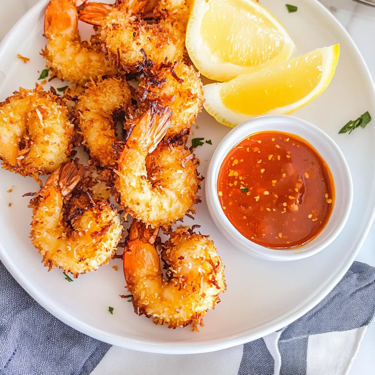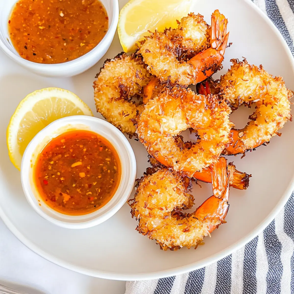 Crispy Perfection: Each bite promises a golden, crunchy exterior that leads to tender, juicy shrimp inside. Deliciously Versatile: Serve it as a stunning appetizer or elevate your dinner with a tropical touch. Easy to Make: Even novice cooks can whip up this dish with minimal effort and time. Festive Appeal: It’s perfect for gatherings, providing a crowd-pleasing option that outshines takeout. For a complete meal, pair it with some Spring Rolls or your favorite slaw. You’ll love seeing the smiles on your loved ones’ faces as they enjoy this easy coconut shrimp!
