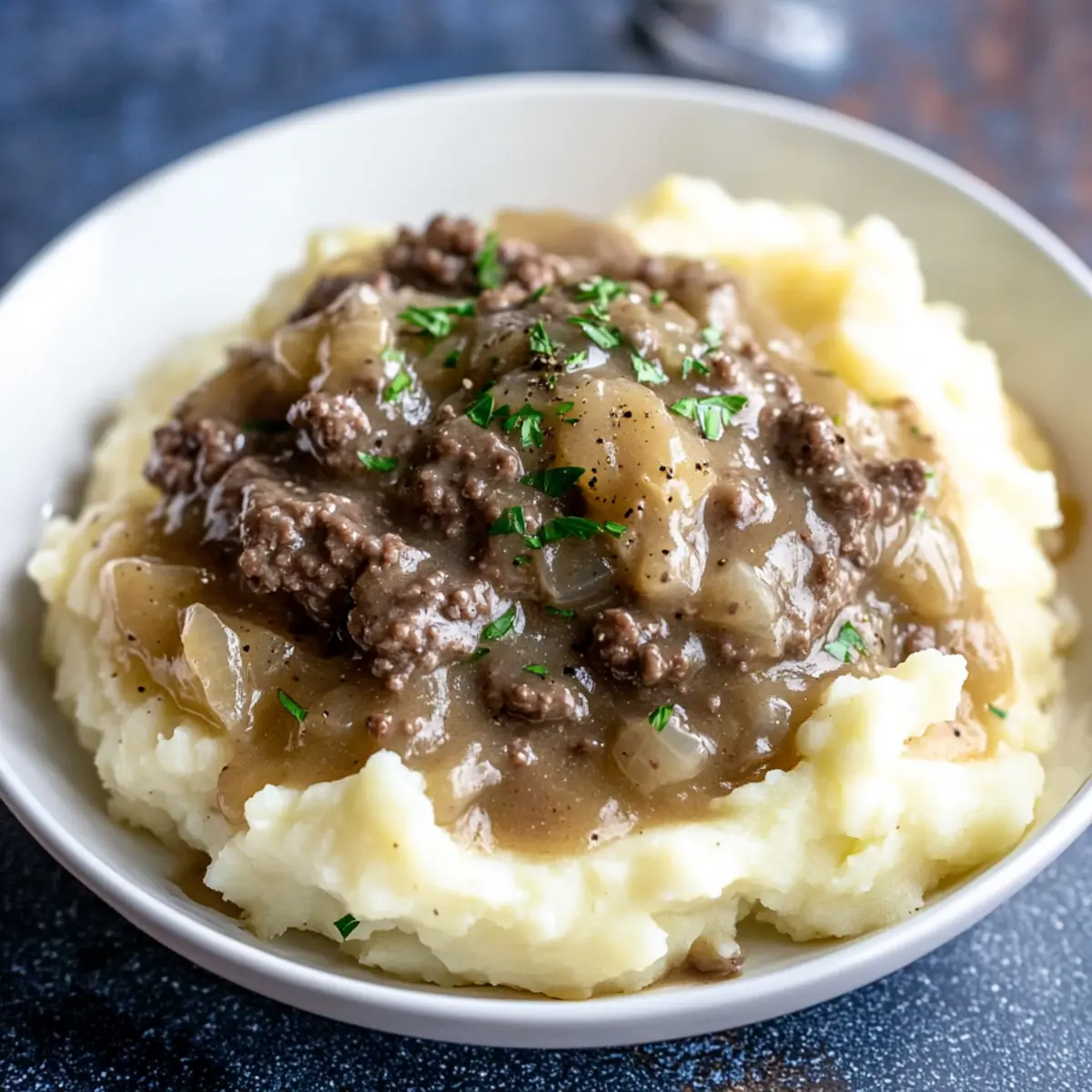 Once your Easy Hamburger Gravy is thickened and rich in flavor, serve it hot over a fluffy mound of mashed potatoes, rice, or buttered noodles. Garnish with freshly chopped parsley for a pop of color and extra flavor. This final touch makes your meal not only delicious but visually inviting as well!