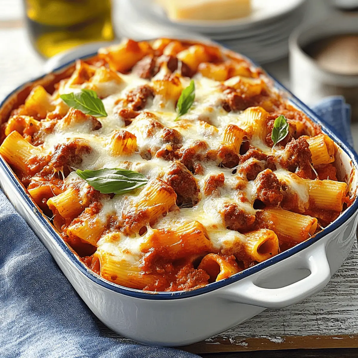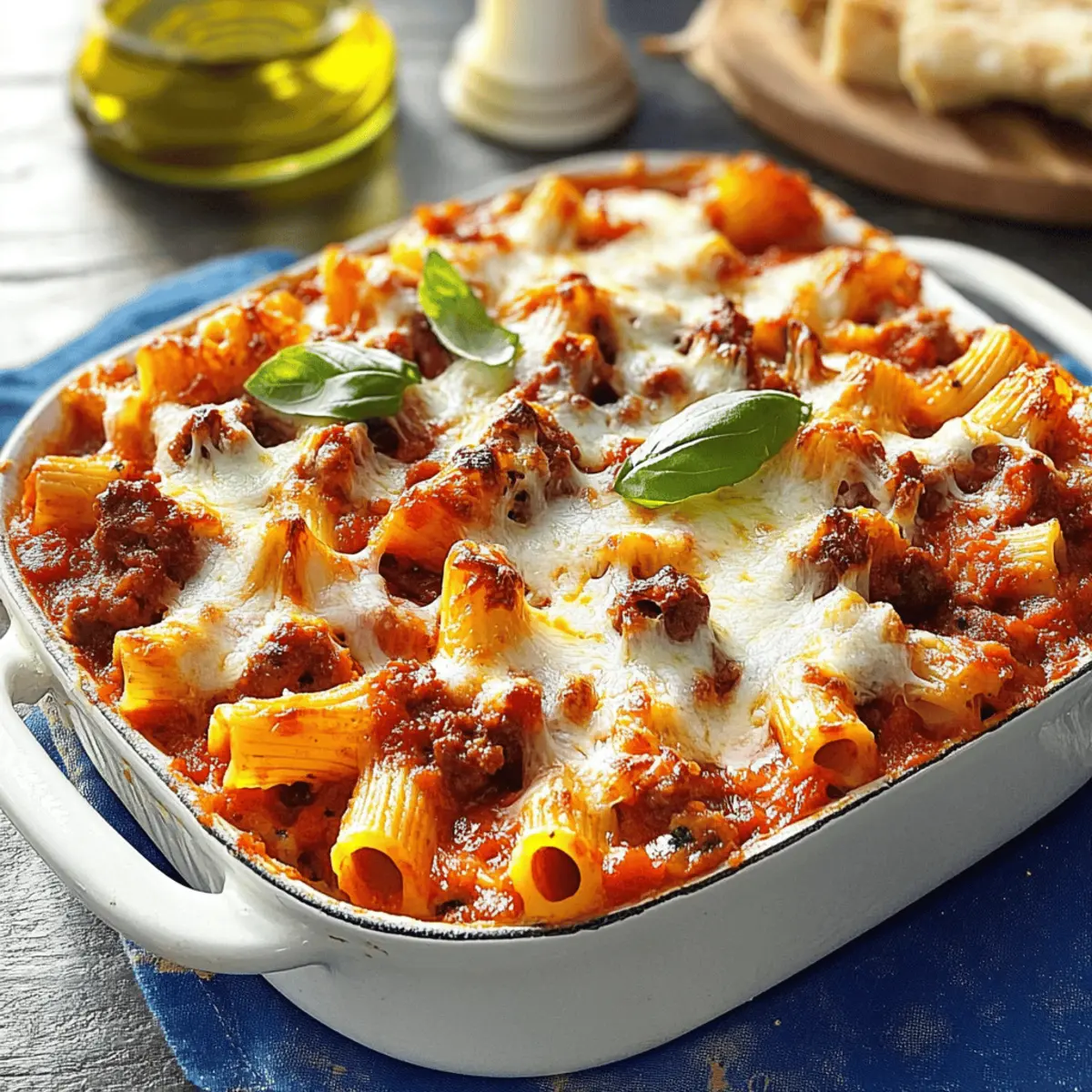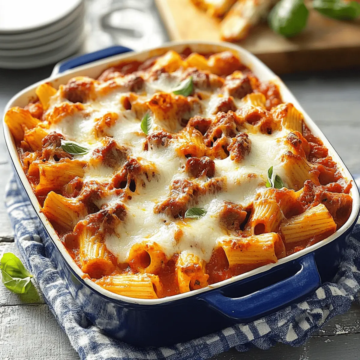 Begin by preheating your oven to 350°F (175°C). This important step ensures that your Four-Cheese Sausage Rigatoni will bake evenly, creating that delightful golden crust on top. While the oven heats, you can prepare the ingredients, making your cooking process smooth and efficient.