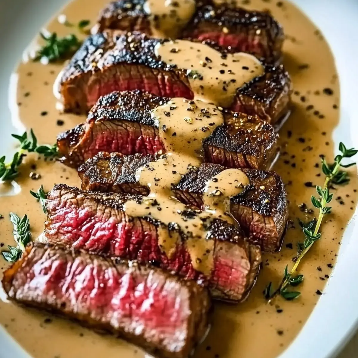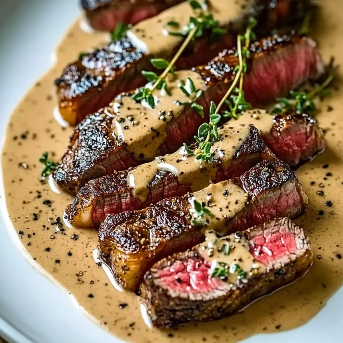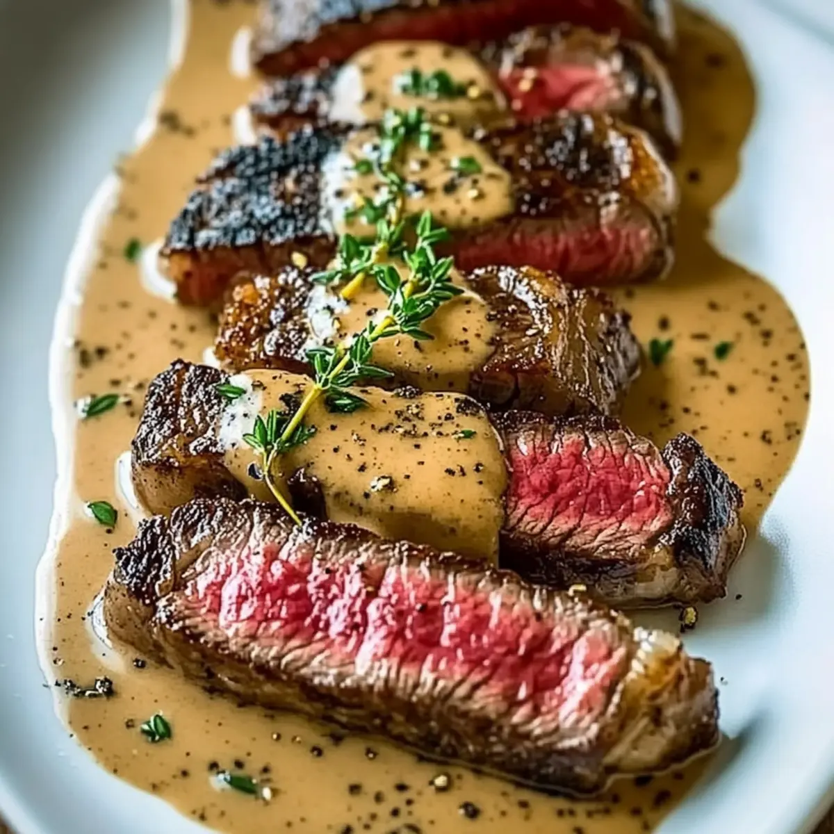 After resting, slice the steaks against the grain into ½-inch thick pieces for maximum tenderness. Arrange on plates and generously spoon the cognac cream sauce over the top. Garnish with fresh thyme sprigs and additional cracked pepper if desired, transforming your French Seared Steak with Cognac Cream Sauce into a stunning presentation.