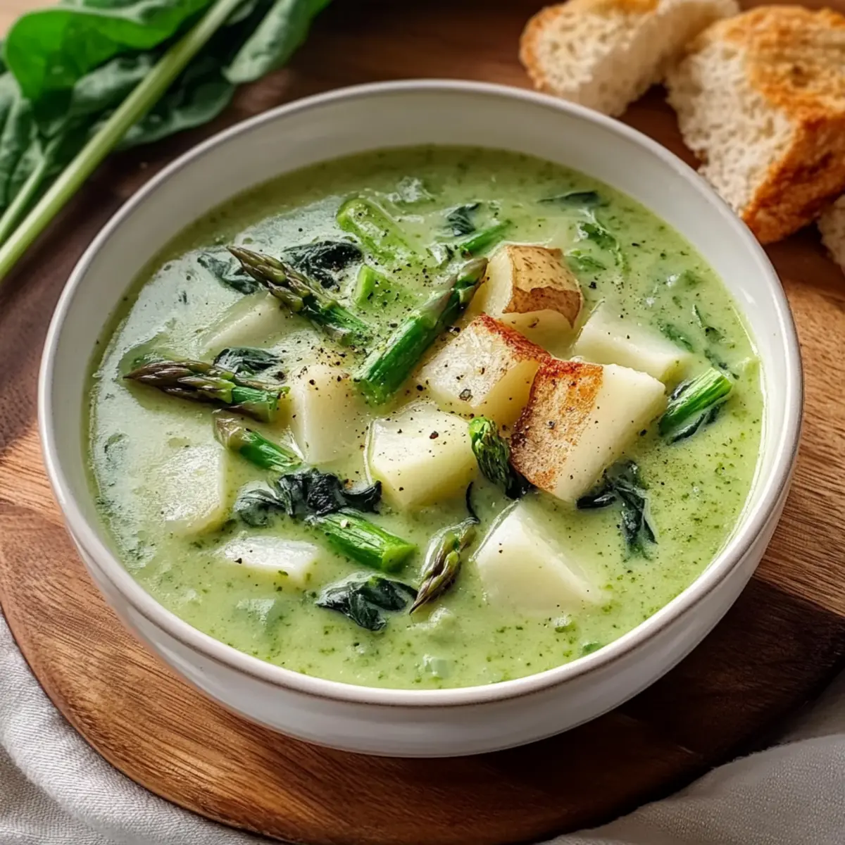 This Creamy French Spring Soup is perfect for meal prep, allowing you to enjoy a fresh, vibrant dish without the last-minute rush! You can chop your vegetables (like asparagus and potatoes) and store them in an airtight container in the refrigerator for up to 24 hours before cooking. Additionally, you can prepare the soup base (steps 1-5) ahead of time and refrigerate it for up to 3 days; just omit the cream and spinach until you’re ready to serve. When finished, simply reheat the soup over low heat, stir in the cream and spinach, and follow the last steps for a dish that tastes just as delightful as when freshly made!