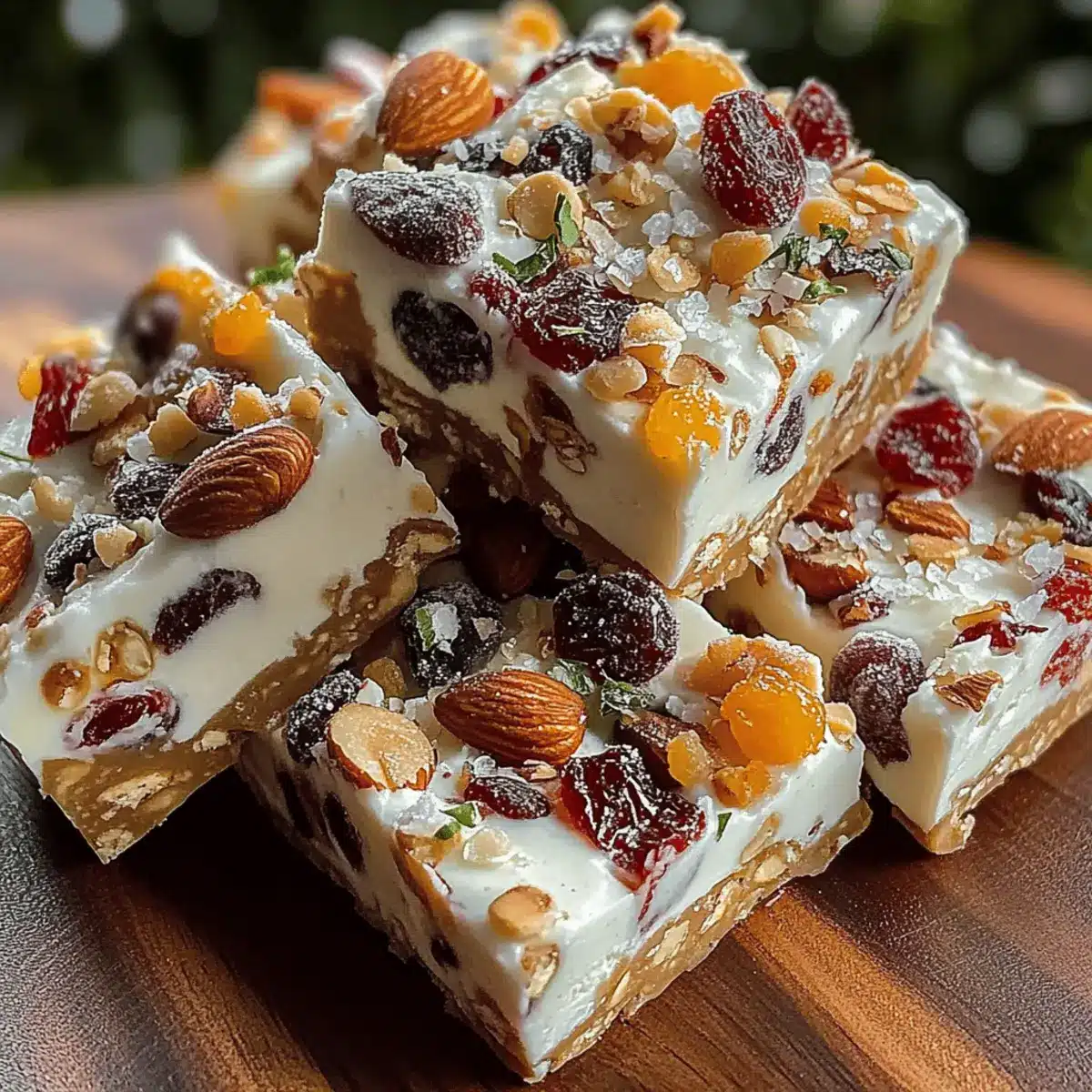 Enjoy the refreshing Fruity Frozen Yogurt Trail Mix Bark Clusters, a customizable snack bursting with flavor and nutrition.