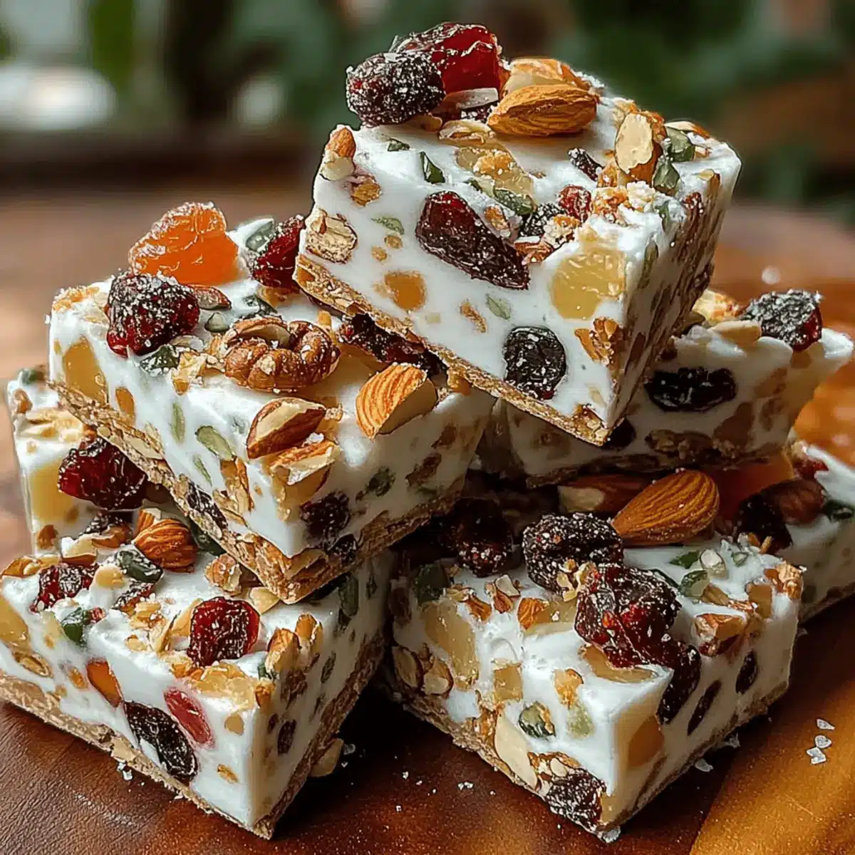 Gently fold in 1 cup of granola, ½ cup of chopped nuts (like almonds or walnuts), and 1 cup of diced dried fruits (such as raisins and cranberries). Use a spatula to carefully mix until everything is evenly coated with the yogurt mixture. The combination of textures will add both crunch and chewiness to your Fruity Frozen Yogurt Trail Mix Bark Clusters, making each bite truly satisfying.