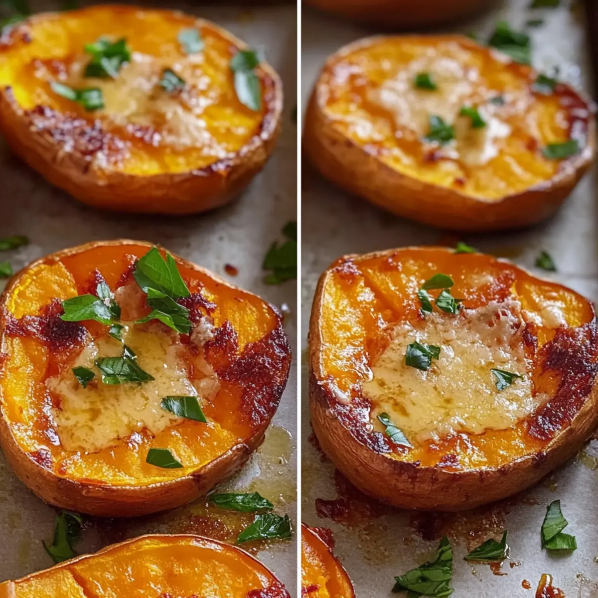 Extra Crunch: Garnish with fried onions or crushed nuts atop the melted parmesan for a deliciously crunchy texture to complement your smashed sweet potatoes.