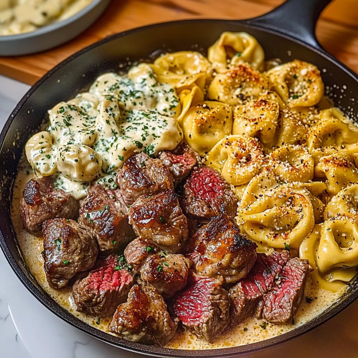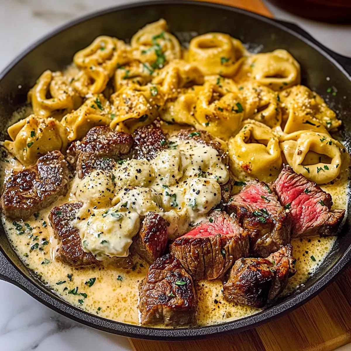 Creamy Garlic Steak & Cheese-Filled Tortellini Skillet Bliss