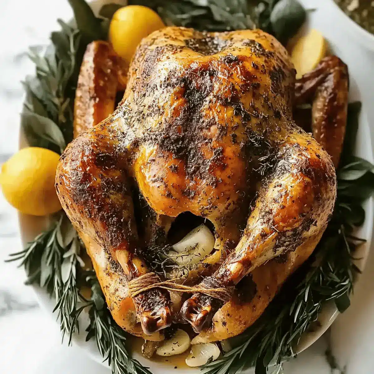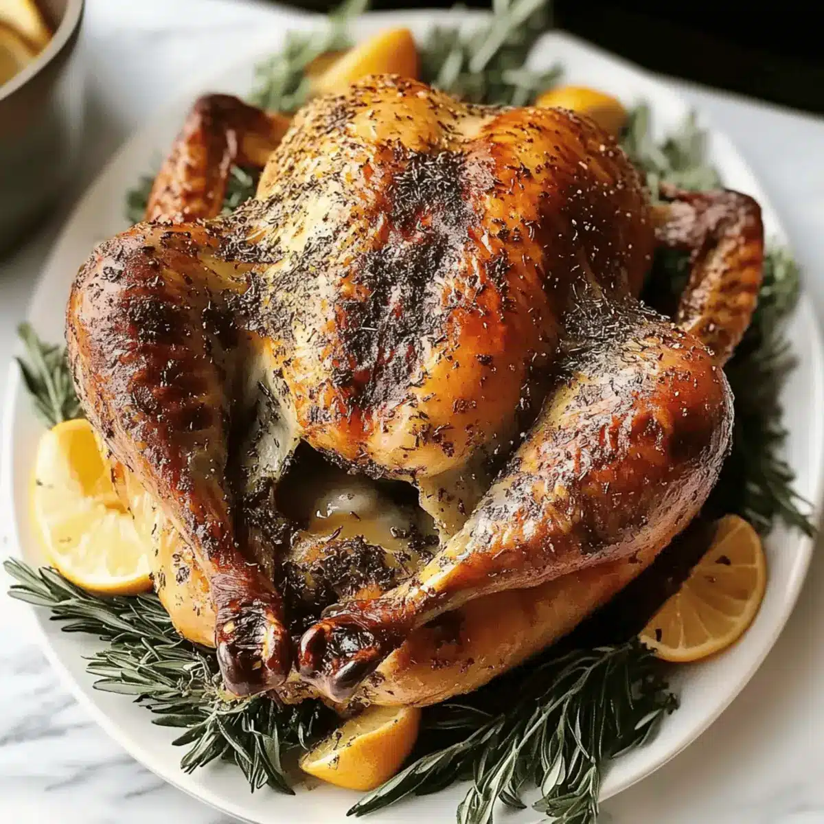 You can easily adjust the Garlic Thanksgiving Turkey recipe to be more health-conscious! Instead of using butter, opt for olive oil mixed with the fresh herbs for that lovely flavor infusion while managing fat content. Also, consider using skinless white meat in your serving to cut down on calories. Serve alongside healthy sides like roasted vegetables or a fresh salad, and you’ll have a deliciously festive yet wholesome meal!