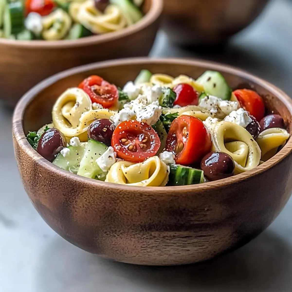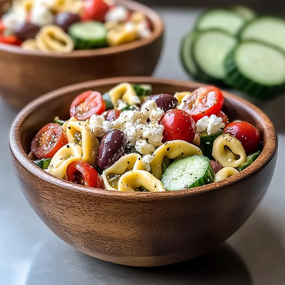 Experience the refreshing taste of summer with this Greek Tortellini Salad, a vibrant dish featuring tender tortellini, crisp vegetables, and tangy olives.
