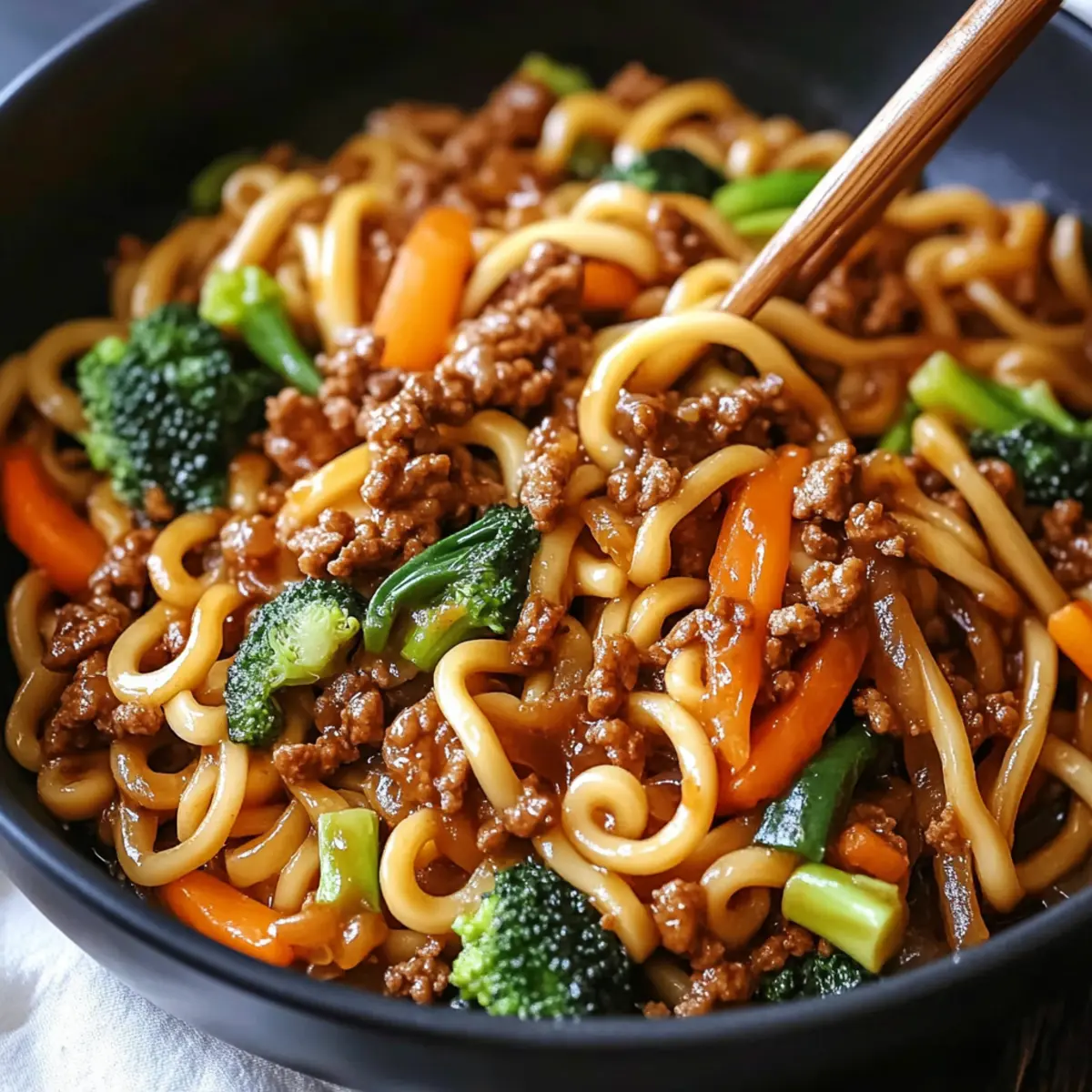 Amid the whirl of hectic weeknights, I stumbled upon the ultimate lifesaver: a 30-Minute Ground Beef Noodle Stir Fry that has transformed our family meals. With tender beef mingling harmoniously with vibrant veggies and chewy udon noodles, this dish captures the essence of quick Asian cuisine without sacrificing flavor or nutrition. Not only is it a breeze to whip up—perfect for pantry cleanouts—but it also invites endless customization, ensuring that no two dinners feel the same. Imagine the delight on your loved ones’ faces as they dig into this colorful, satisfying bowl that doesn’t just whisper comfort but shouts it. Curious how you can make this your new go-to meal? Let’s dive into the recipe!