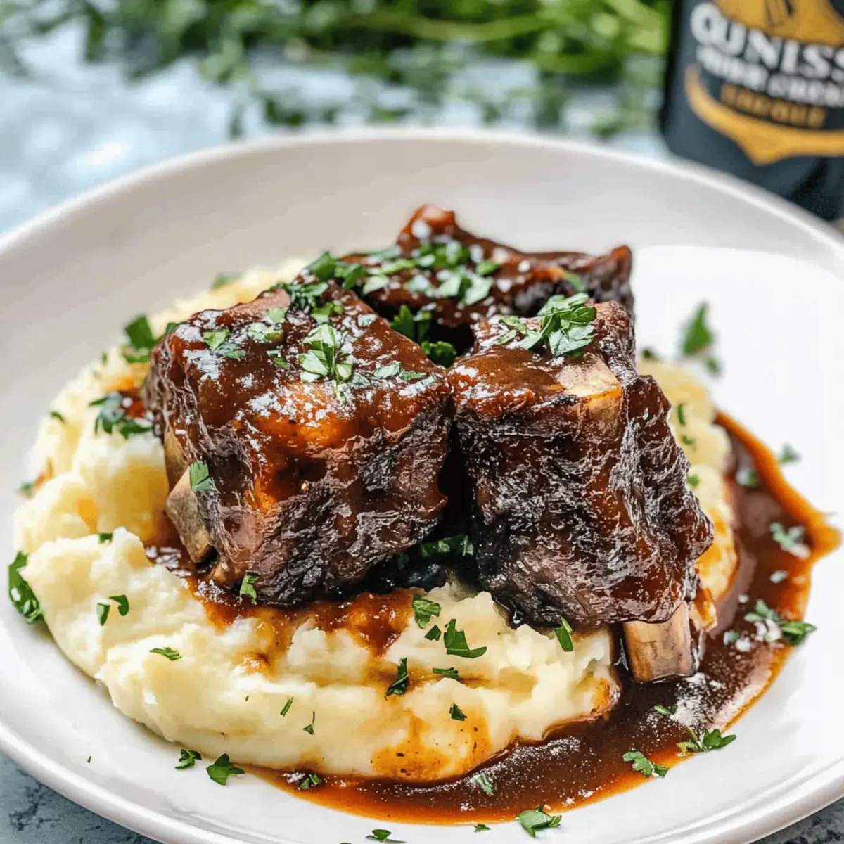 As I stirred the pot, the rich aroma of Guinness Braised Short Ribs began to envelop my kitchen, whisking me away to cozy evenings spent with loved ones. There’s something magical about meat that’s cooked low and slow, creating a dish that’s not just hearty but also packed with comforting flavors. This recipe is a showstopper, perfect for those special family dinners or when friends are gathered around the table. Not only does it deliver melt-in-your-mouth tenderness, but it also offers a delightful retreat from the mundane fast-food routine. Imagine serving these robust, fall-off-the-bone ribs over creamy mashed potatoes—they’re sure to spark joy with every bite! Are you ready to indulge in this comforting dish that warms the soul?