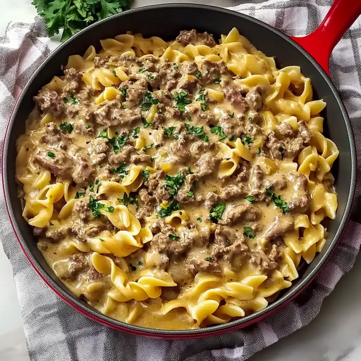 These Hamburger Helper Beef Stroganoff ingredients are perfect for meal prep enthusiasts! You can brown the ground beef and combine it with the seasonings up to 24 hours in advance, storing it in an airtight container in the fridge to lock in flavor. Additionally, you can prepare the sauce (without the sour cream and cream of mushroom soup) and refrigerate it for up to 3 days. When you’re ready to enjoy your meal, simply cook the pasta, reheat the beef mixture, and stir in the creamy components. This approach not only saves time but ensures your dish is just as delicious as if made fresh, making weeknight dinners a breeze!