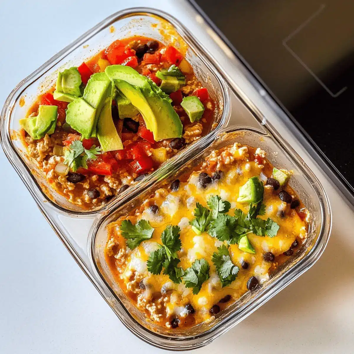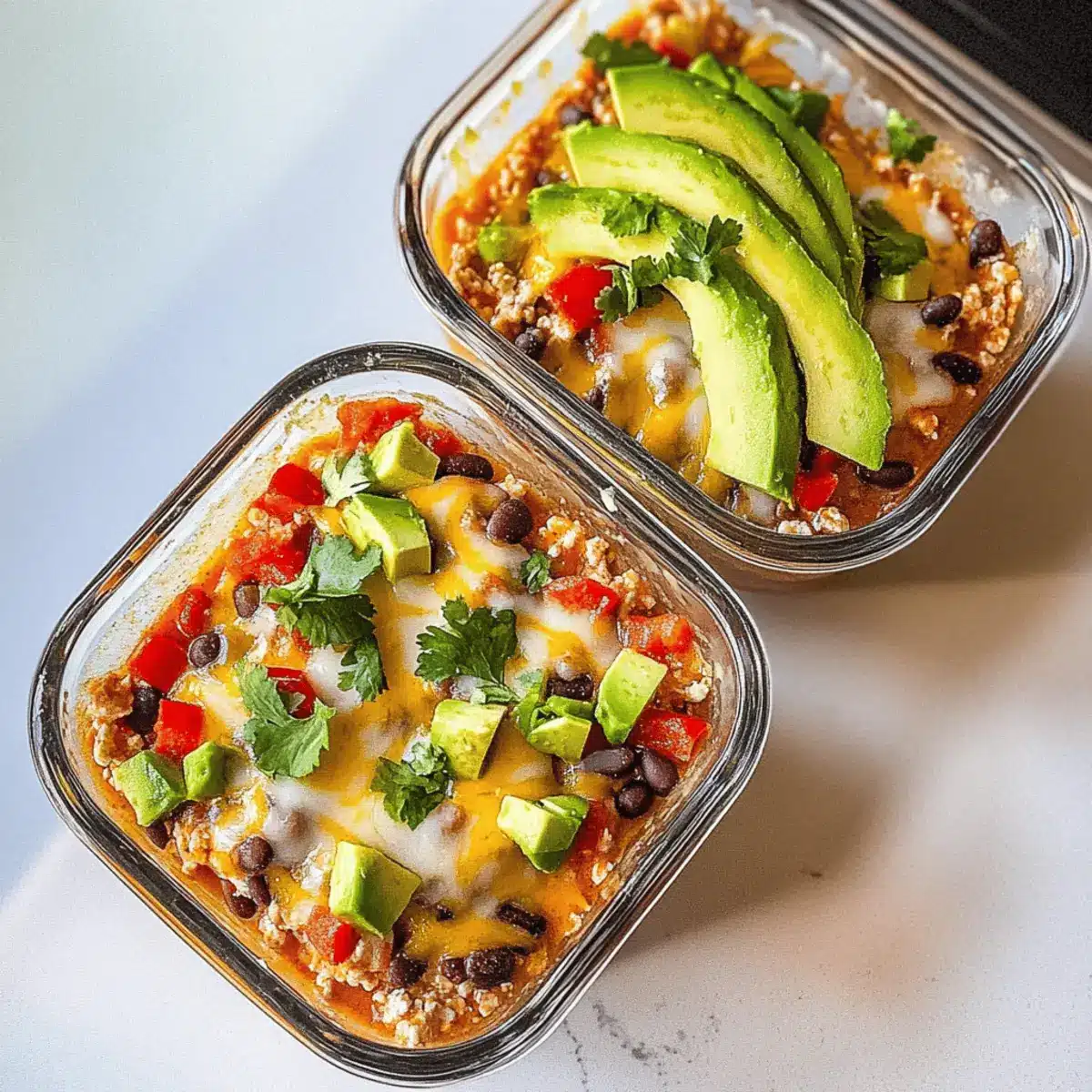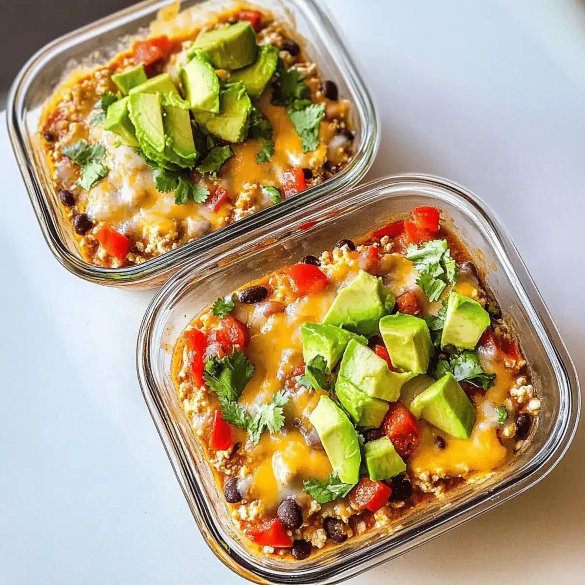 These High-Protein Chicken Cottage Cheese Enchilada Bowls are perfect for meal prep enthusiasts! You can prepare the cottage cheese blend and mix in the shredded chicken and taco seasoning up to 24 hours in advance. Store this mixture in an airtight container in the refrigerator to keep it fresh and flavorful. Additionally, chop your veggies (red bell pepper, corn, and black beans) ahead of time and refrigerate them separately for convenience. When you’re ready to enjoy your bowls, simply combine the components, microwave for 1-2 minutes until heated through, and garnish with fresh cilantro and avocado. This way, you’ll have a delicious, nutritious meal ready to go, saving you valuable time during busy weeknights!