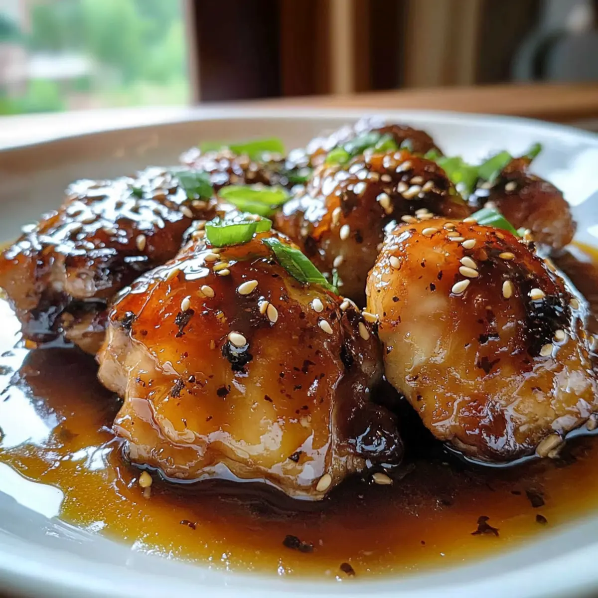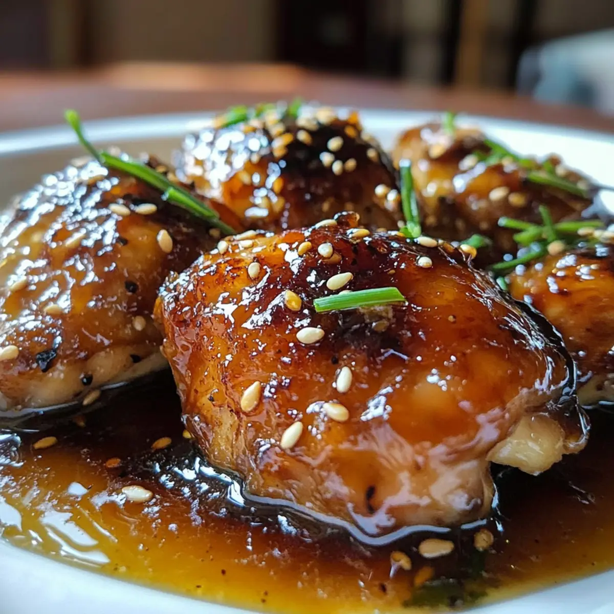 In a medium bowl, whisk together 1/4 cup honey, 1/4 cup soy sauce, 2 tablespoons rice vinegar, and 1 tablespoon sesame oil. Add 3 cloves of minced garlic and 1 teaspoon of grated fresh ginger, blending the ingredients until fully combined. This sweet and savory mixture will turn your chicken thighs into a mouthwatering dish packed with rich flavor.
